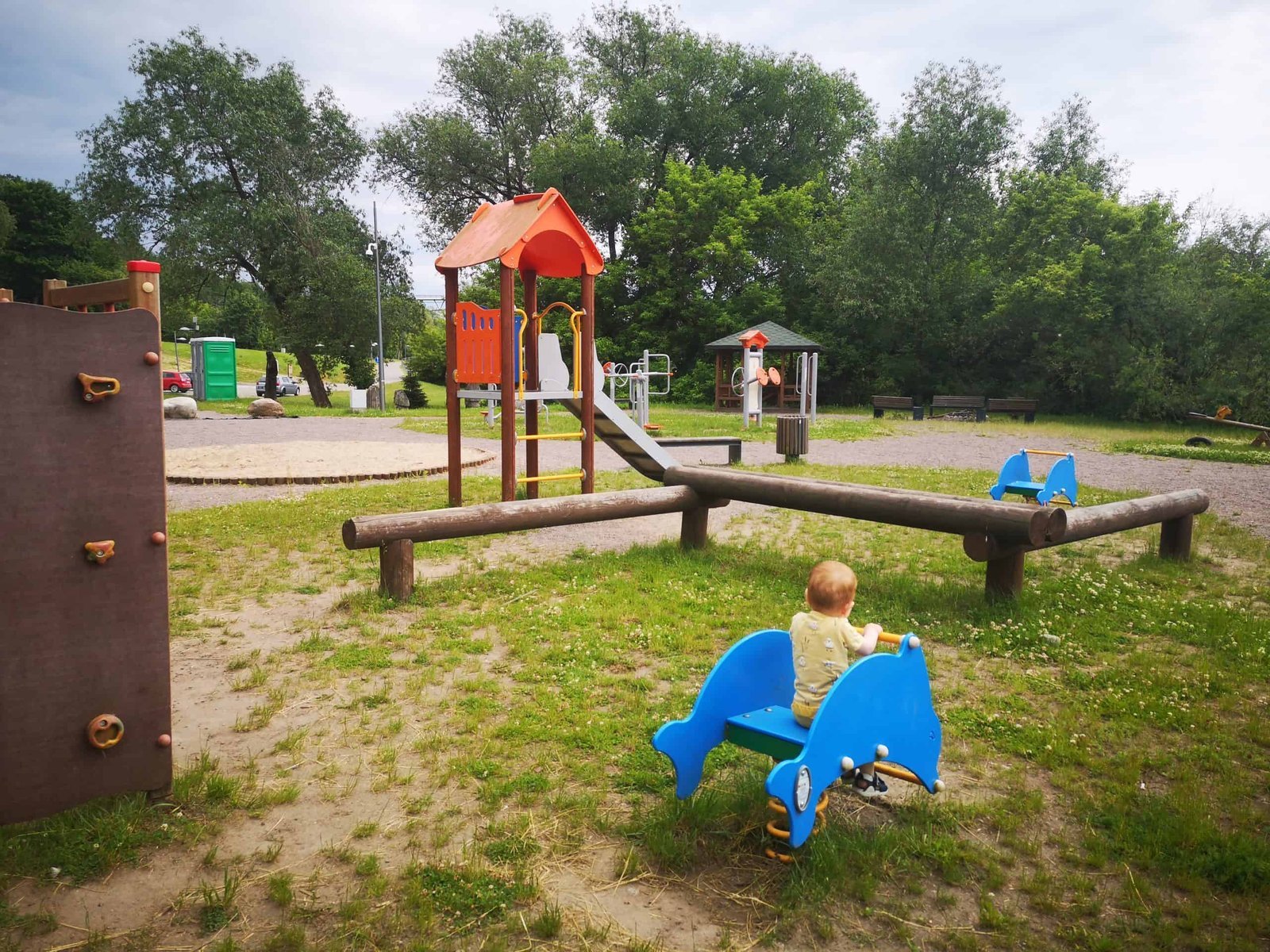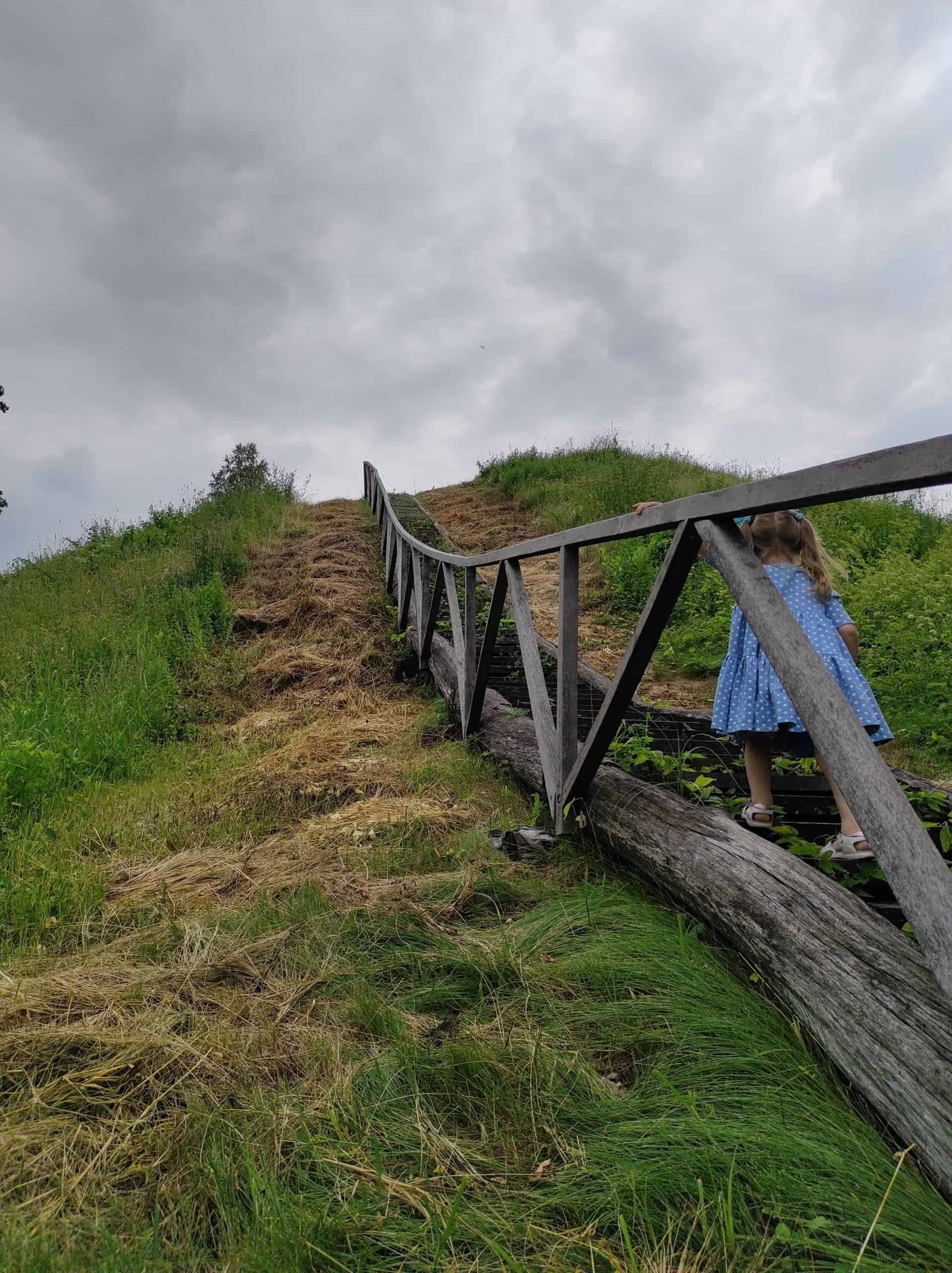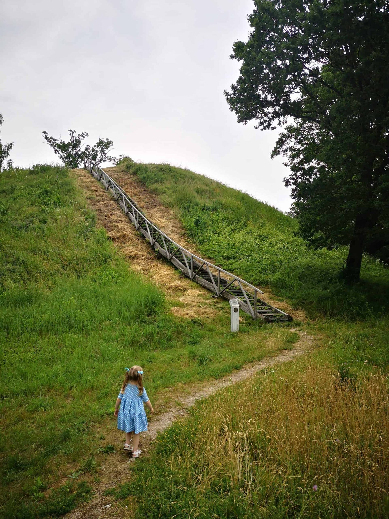 There is a small parking lot, toilets, children’s playground and gazebos next to the Alytus mound. When you arrive, you can first sit down to have a snack, and the children will play on the playground. Nearby you will find a small stream, which the children will love to walk back and forth on the stones.