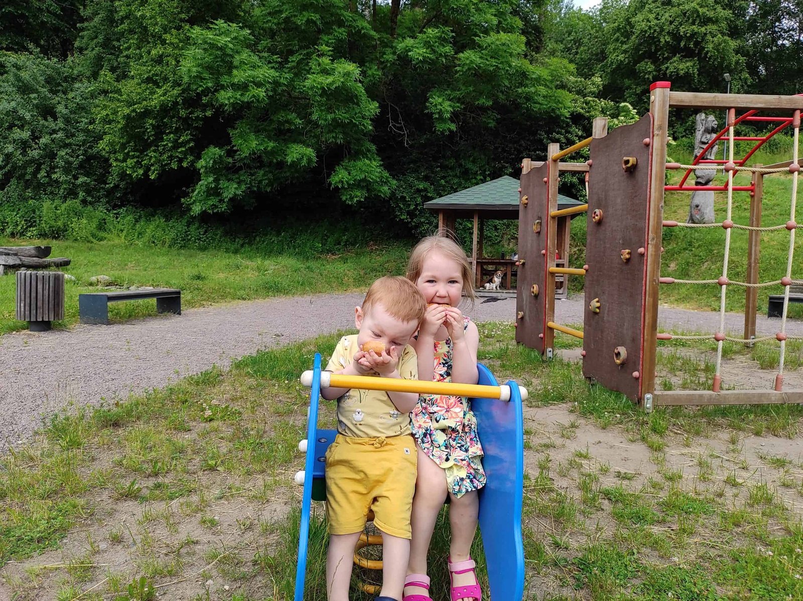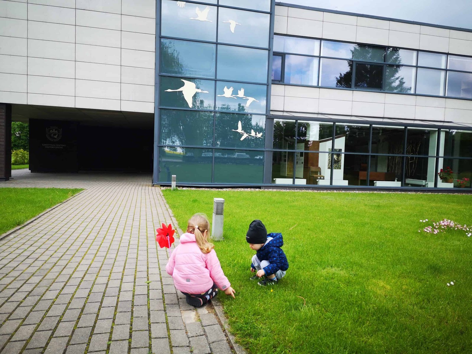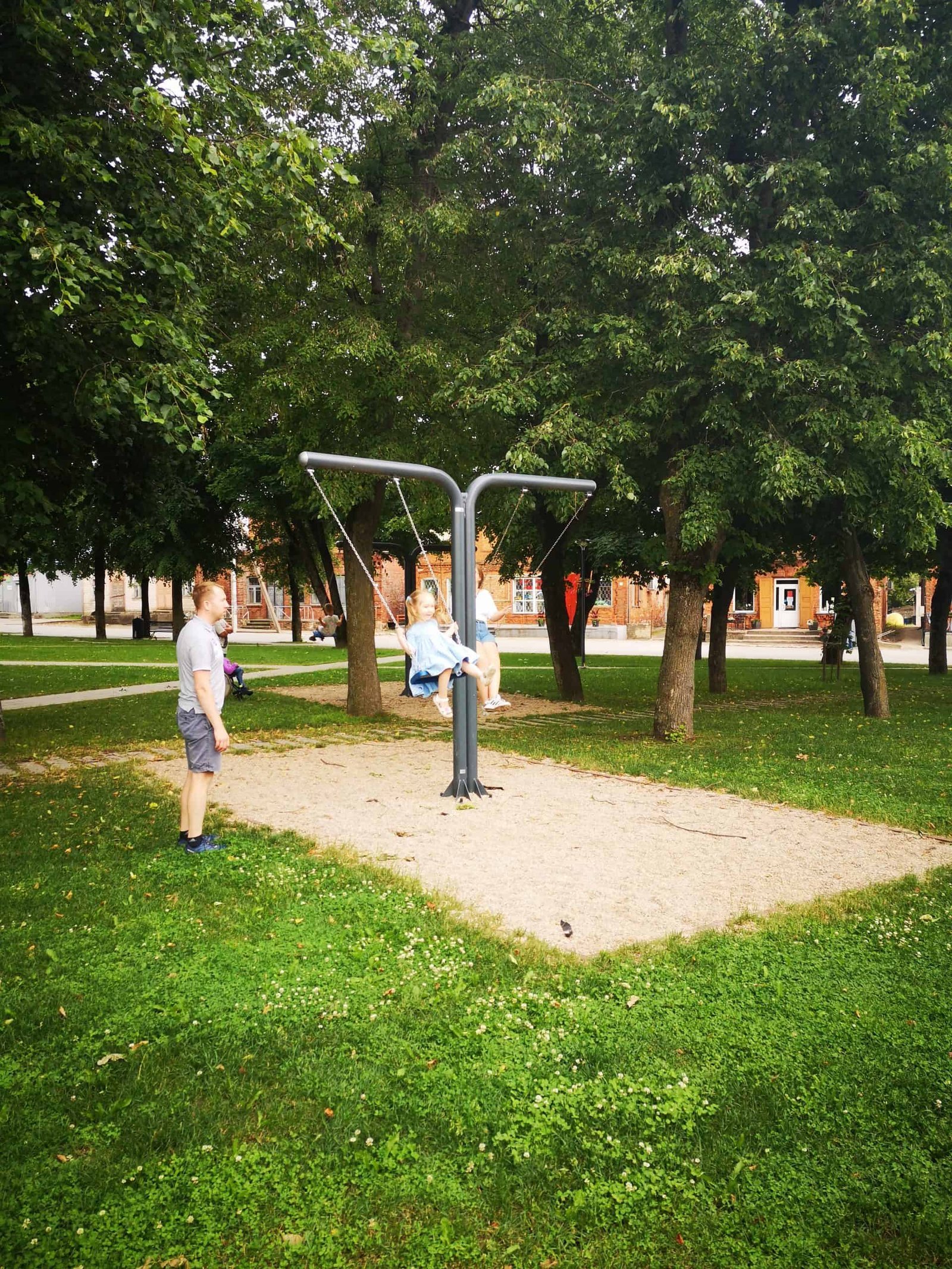 There is an outdoor cafe next to the visitor center where you can have a coffee and a snack. Rasa did so: after the trip from Vilnius, she drank coffee with her husband, and the children swung around in the swing set nearby.
