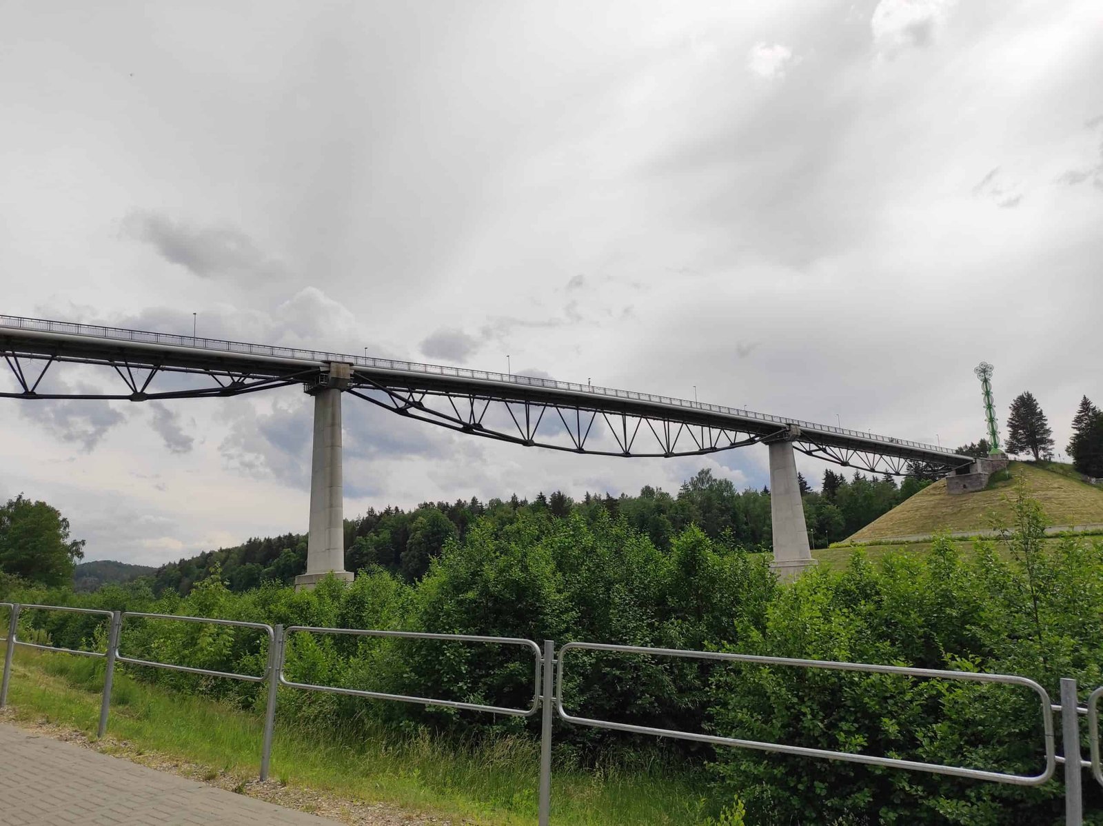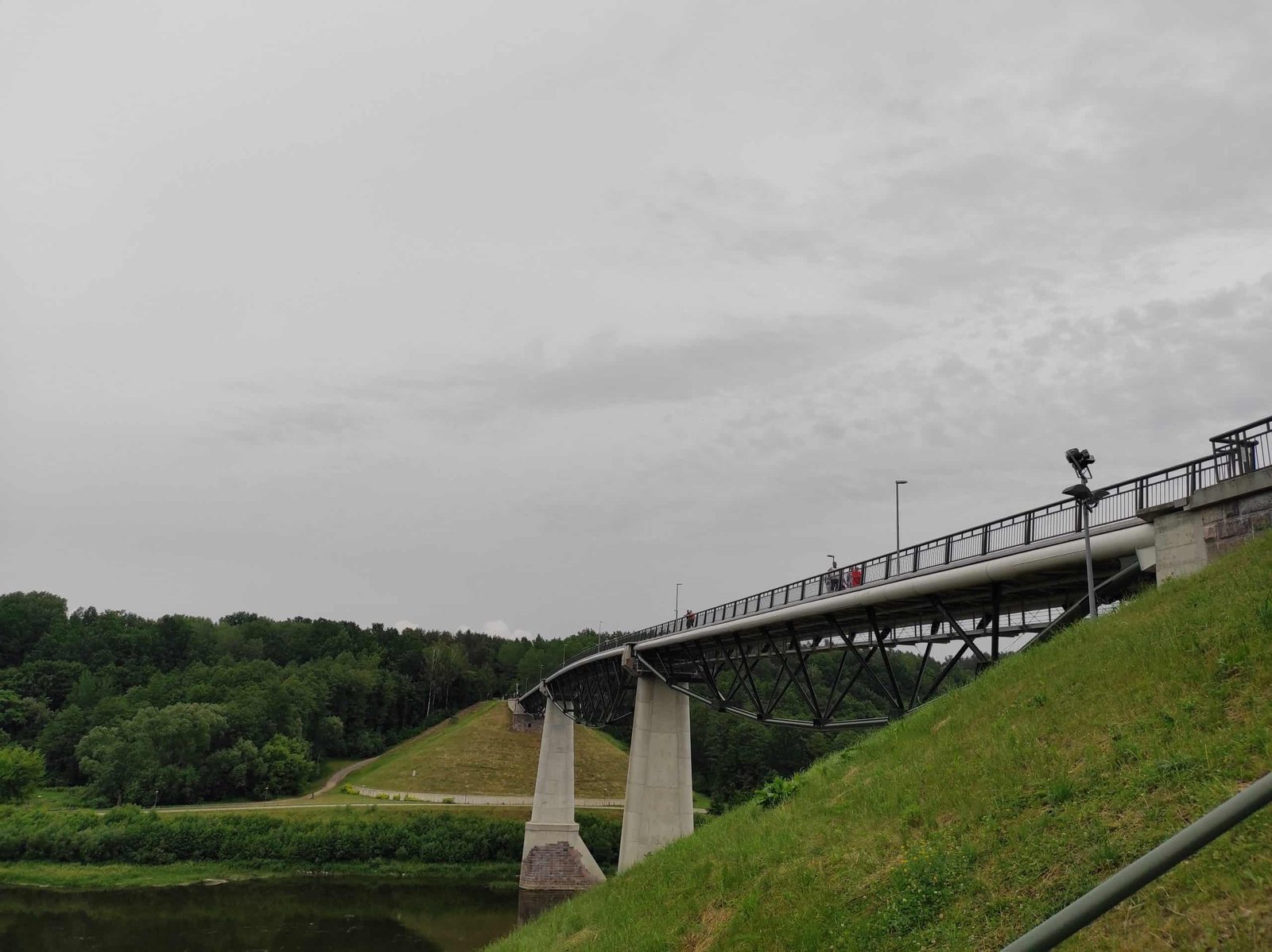 The White Rose Bridge is the the highest pedestrian and bicycle bridge in Lithuania, built in Alytus in 2015. It was built on the surviving things of the former railway bridge and has entered the Lithuanian Book of Records. Its height is 38.1 m, and the length is 240.52 m. The bridge is really impressive, with beautiful views. At the approaches to the White Rose Pedestrian and Bicycle Bridge, a heart of roses made of stainless steel is built, on which you can safely hang love locks.