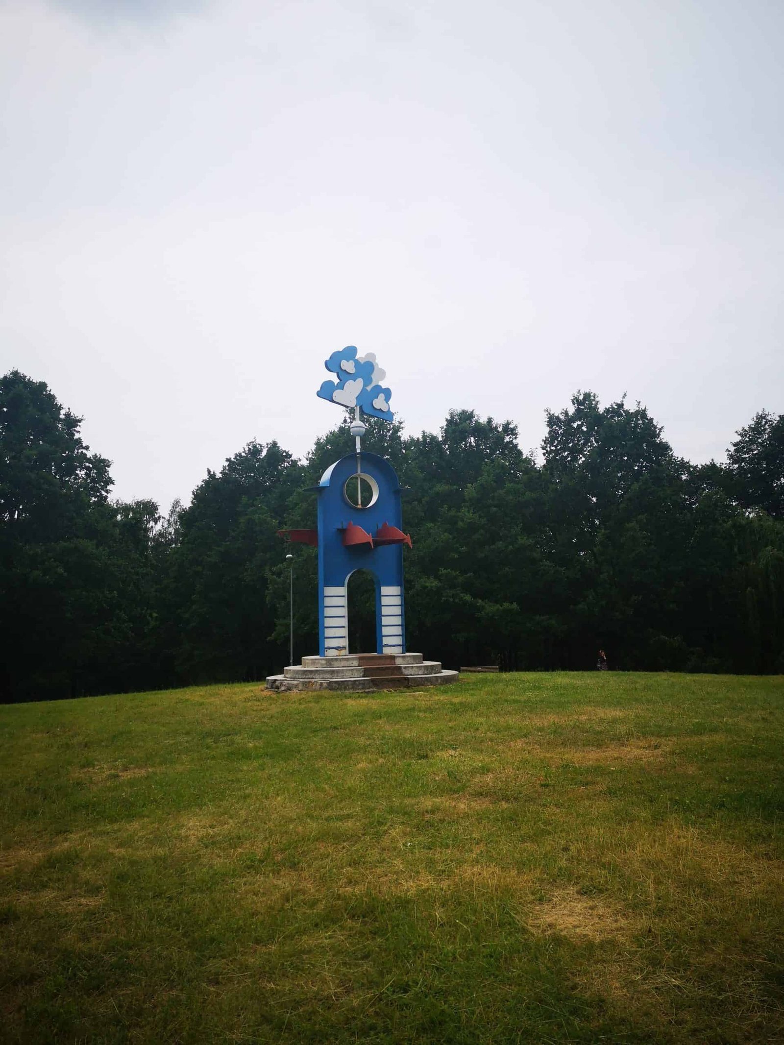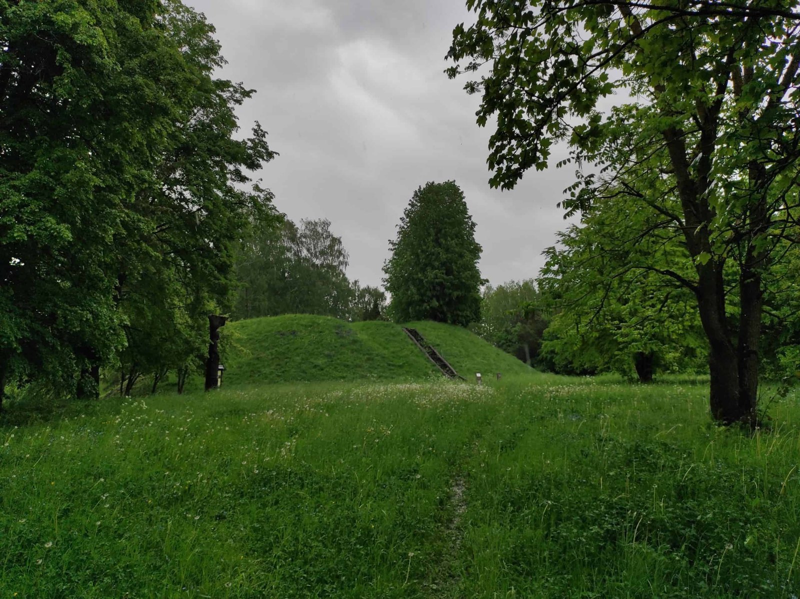 After resting, you can climb the mound. The mound is high, some of the stairs are not in good condition, but you can still successfully climb them all. There is an altar on the mound, the mound is rarely maintained and overgrown with tall grass. The foot of the mound is decorated with an exhibition of sculptures called “Ancestors of the Alytus mound”.