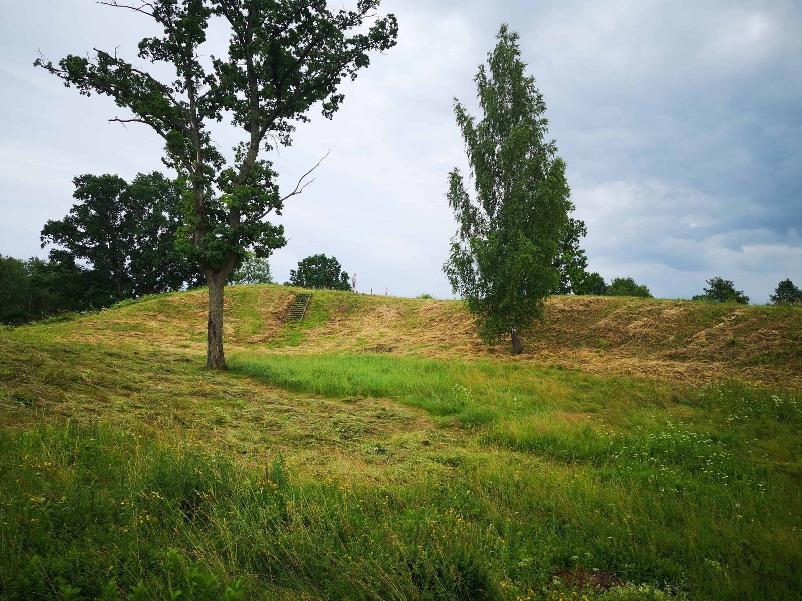 Leave your car right on the gravel road next to the mound, as there is no parking. The mound is small, but it will turn out to be quite interesting, when you climb it, there is like a hole in the middle, a beautiful view of the fields opens up, and at the foot of the mound you can see water (it looks like two ponds). The mound is located between two nameless streams.