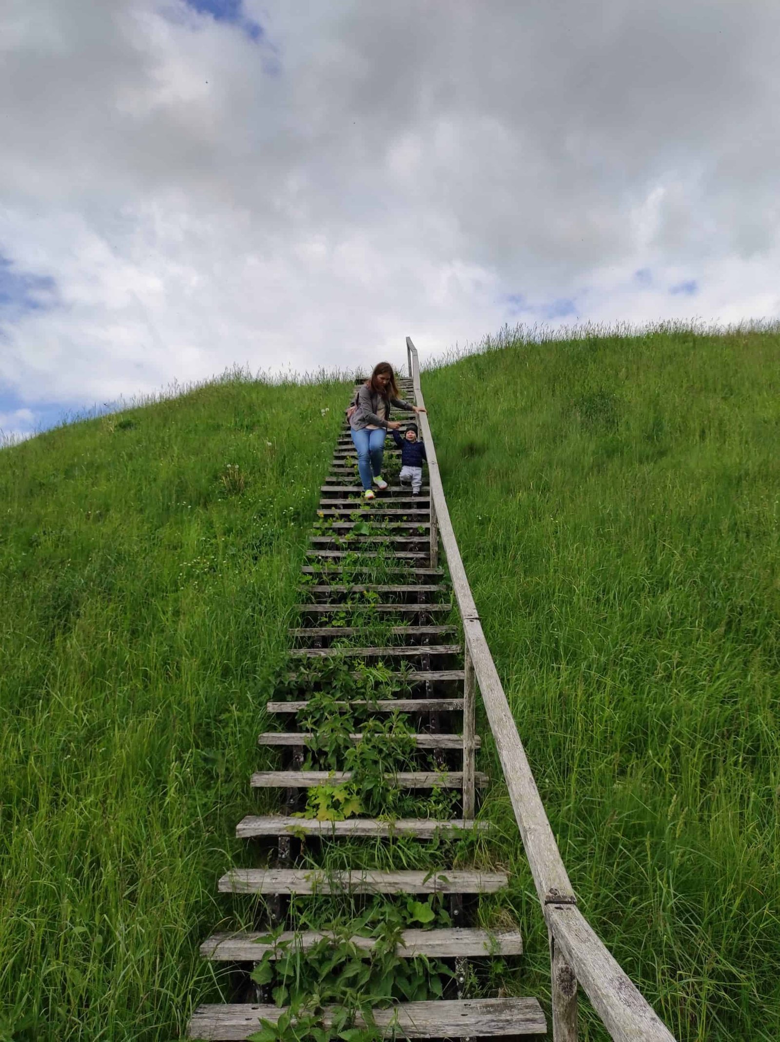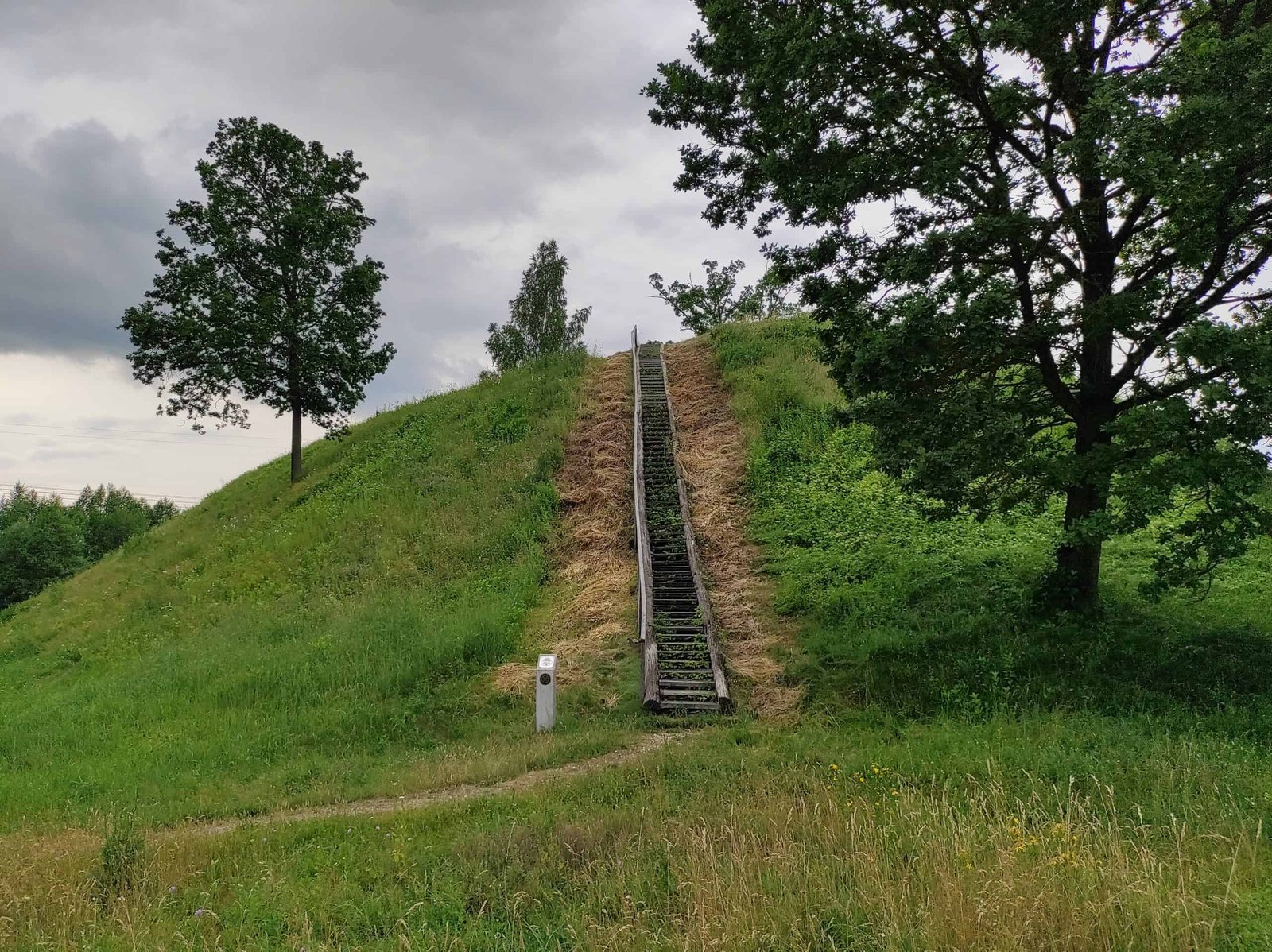 “After reaching the mounds, it turned out that they were forgotten. The grass is not cut, the bench is overturned, there is a pile of garbage next to the bench. The stairs of Kaukai mound are also not in a good condition, large nettles have grown between the stairs. We climbed up, took a picture, but it didn’t leave an impression. The Obelytė mound is nearby, but it is already disappearing, there is not much access to it, because everything is covered with grass,” says Rasa.