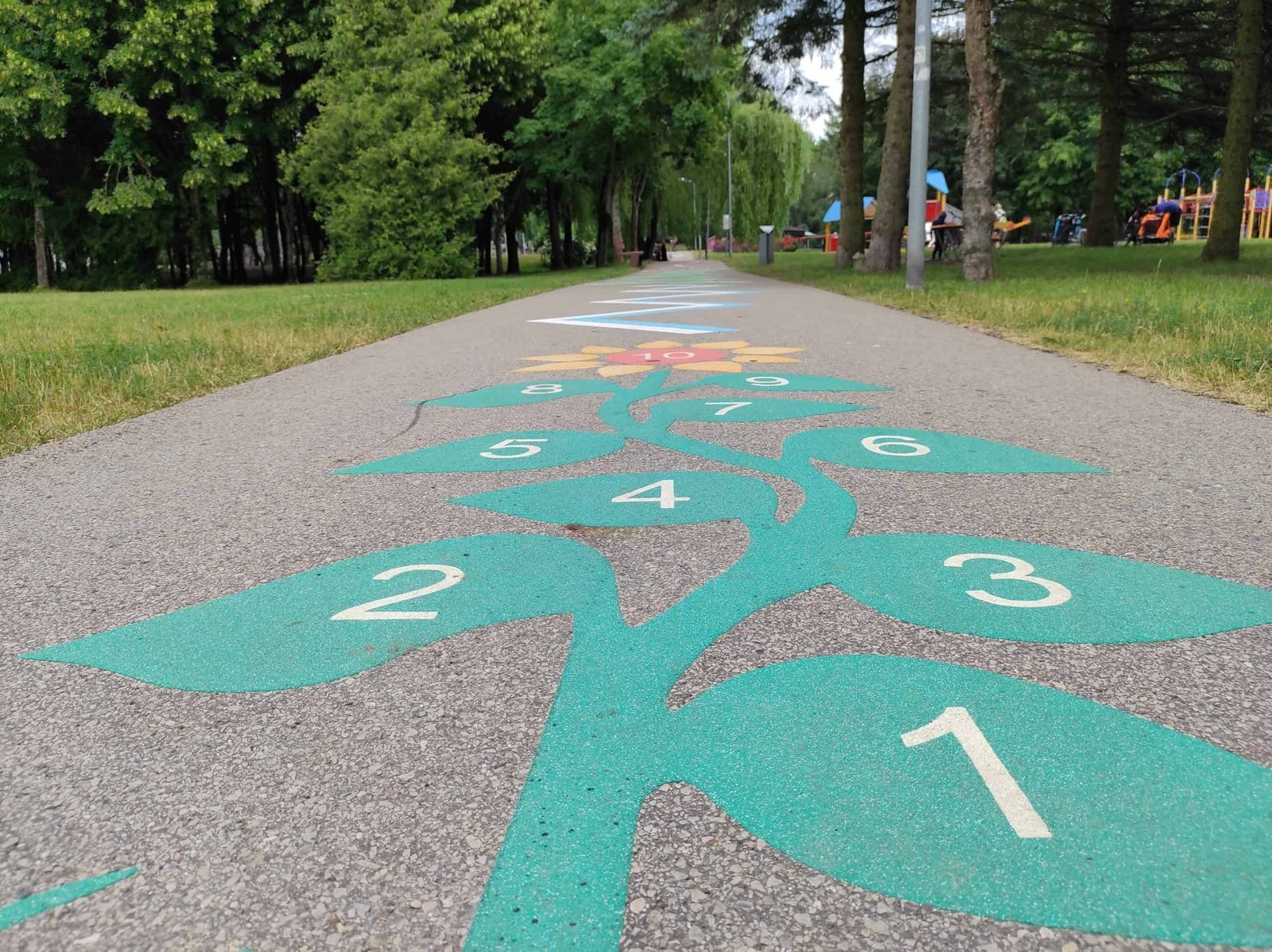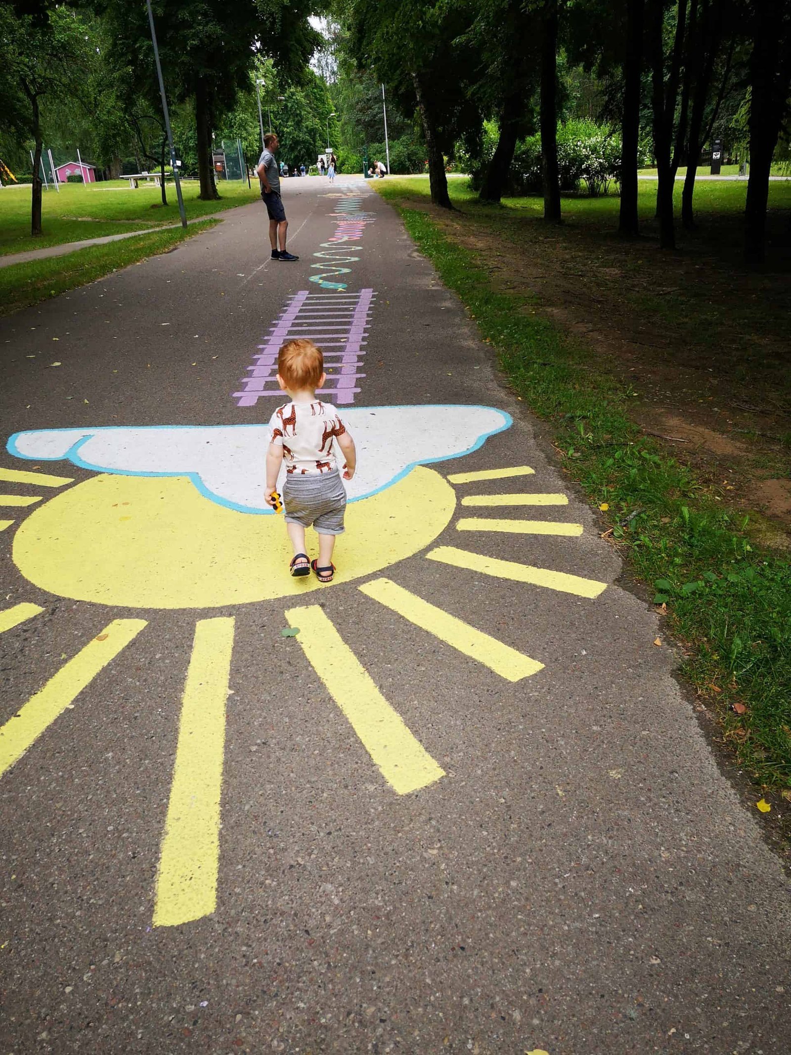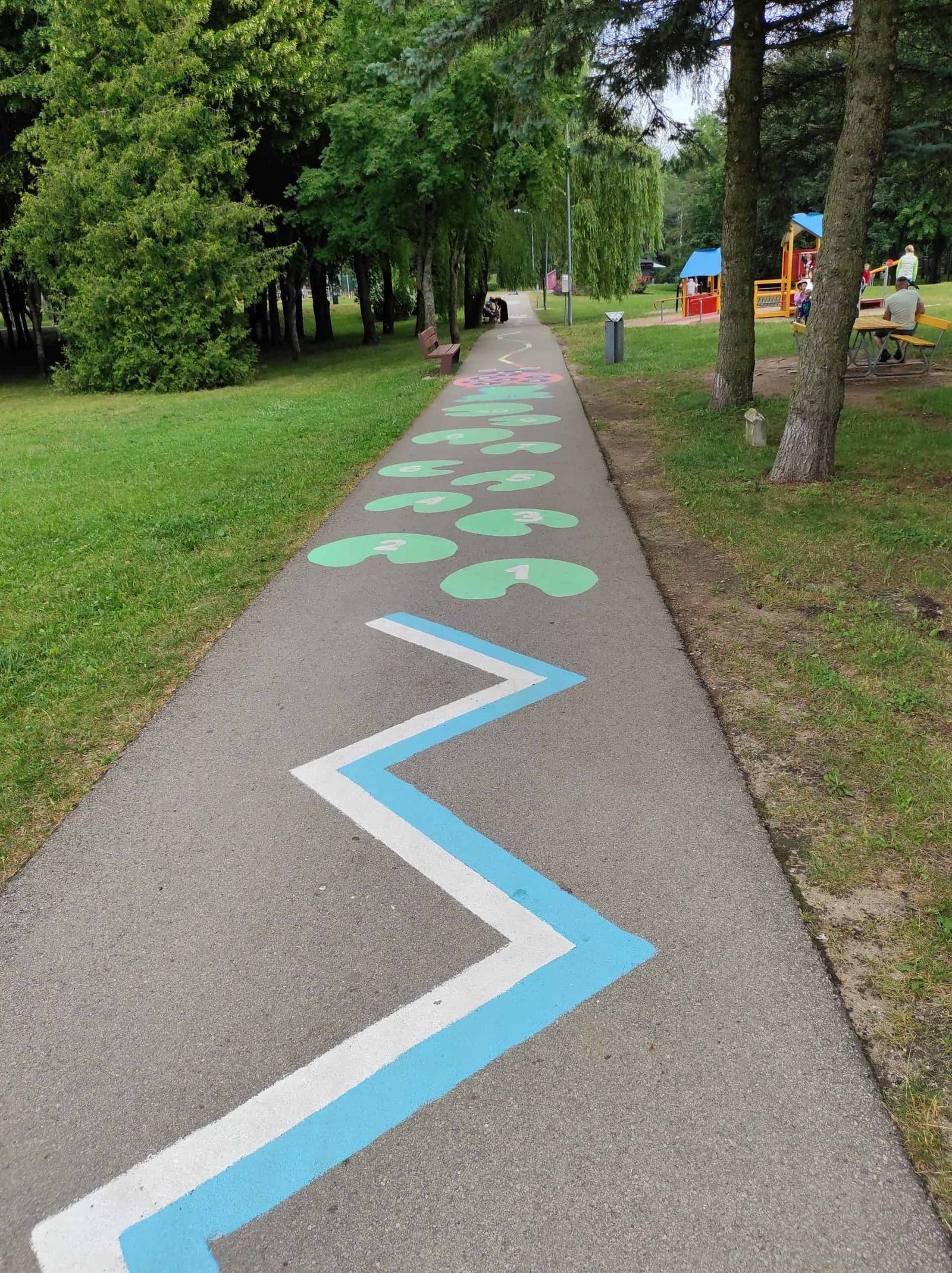 The park has marked bicycle paths, and the paths are beautifully painted with pictures.