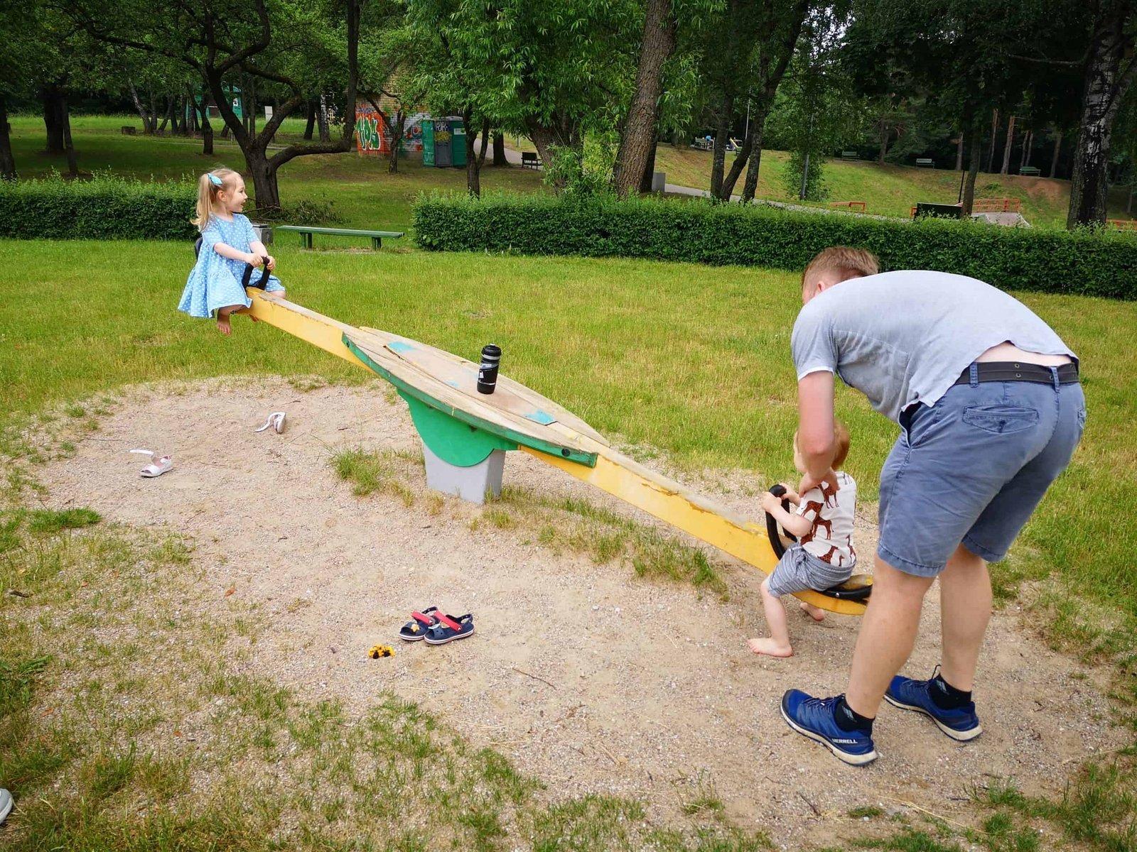You will like this place very much, where you can spend the whole day after taking food. The resort park is very large, it starts behind the square of the Freedom Angel and continues along the Health Path to the Nemunas River in the Valley of Songs. In the square of the park, next to the Liberty Angel Square, there is a memorial commemorating the sufferings of the nation “Silent Bell”, equipped with outdoor musical instruments and children’s playgrounds, where we spent a lot of time. Children will swing, dance, play musical instruments – a melodious time for everyone.