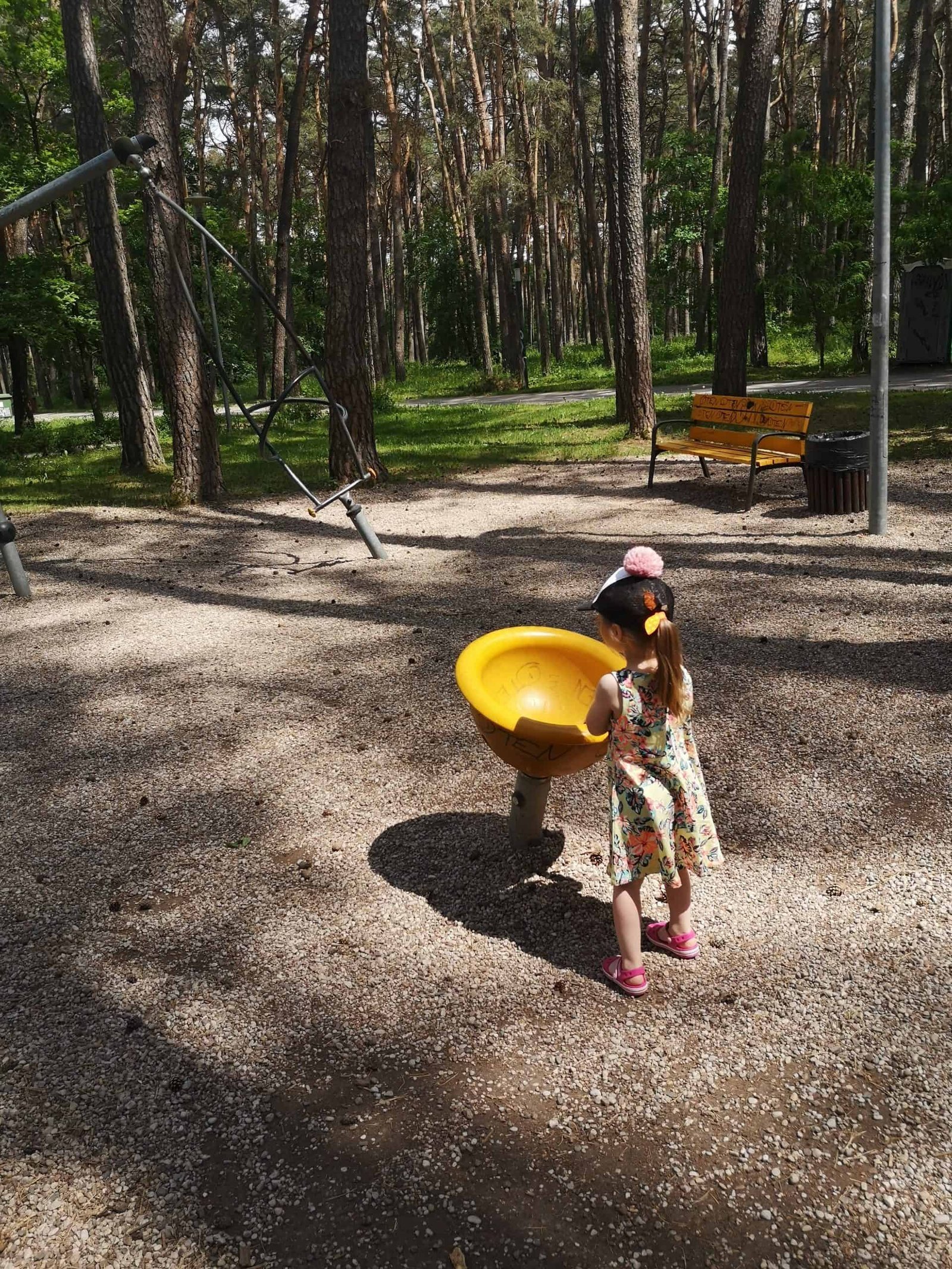 The city garden is located on the other side of the Liberty Angel Square from the Resort Park. It’s a small cozy park with a fountain and planted roses. This garden is more suitable for sitting quietly by the fountain and reading a book or walking with a sleeping baby, because it is very quiet around, there was no one else in the garden besides us. Children may not be impressed by the garden, as there will be no activity for them except to run around the fountain and splash with the fountain water. If you want to eat, you will find cafes nearby.
