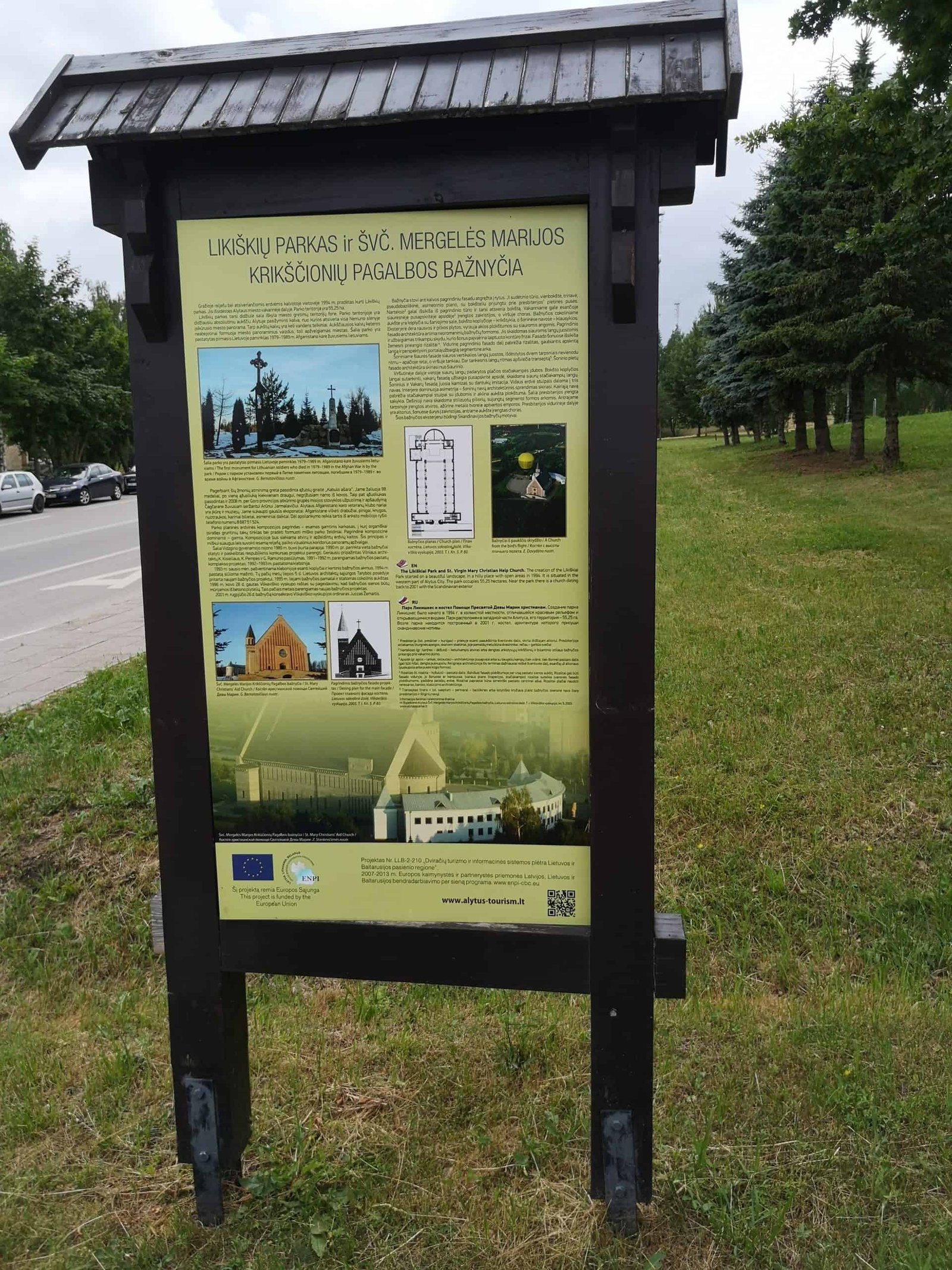 The park is located near St. Virgin Mary Christian Aid Church. The only monument in Lithuania to the Lithuanians who died in the war in Afghanistan in 1979-1989 has been built next to the park. In honor of the memory of these people, an oak grove was planted nearby. The highest (165 m) hill in Alytus is located in Likiškiai Park, but we did not find it.