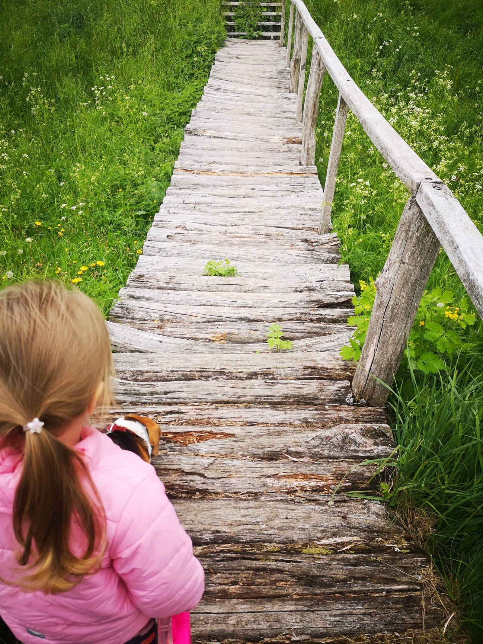 If you carry a child with a stroller with big wheels, you will pass everywhere, but if it is a simpler carriage, it will be more difficult. On the educational trail, everyone will really like the high marsh and the lake of Dusia.
