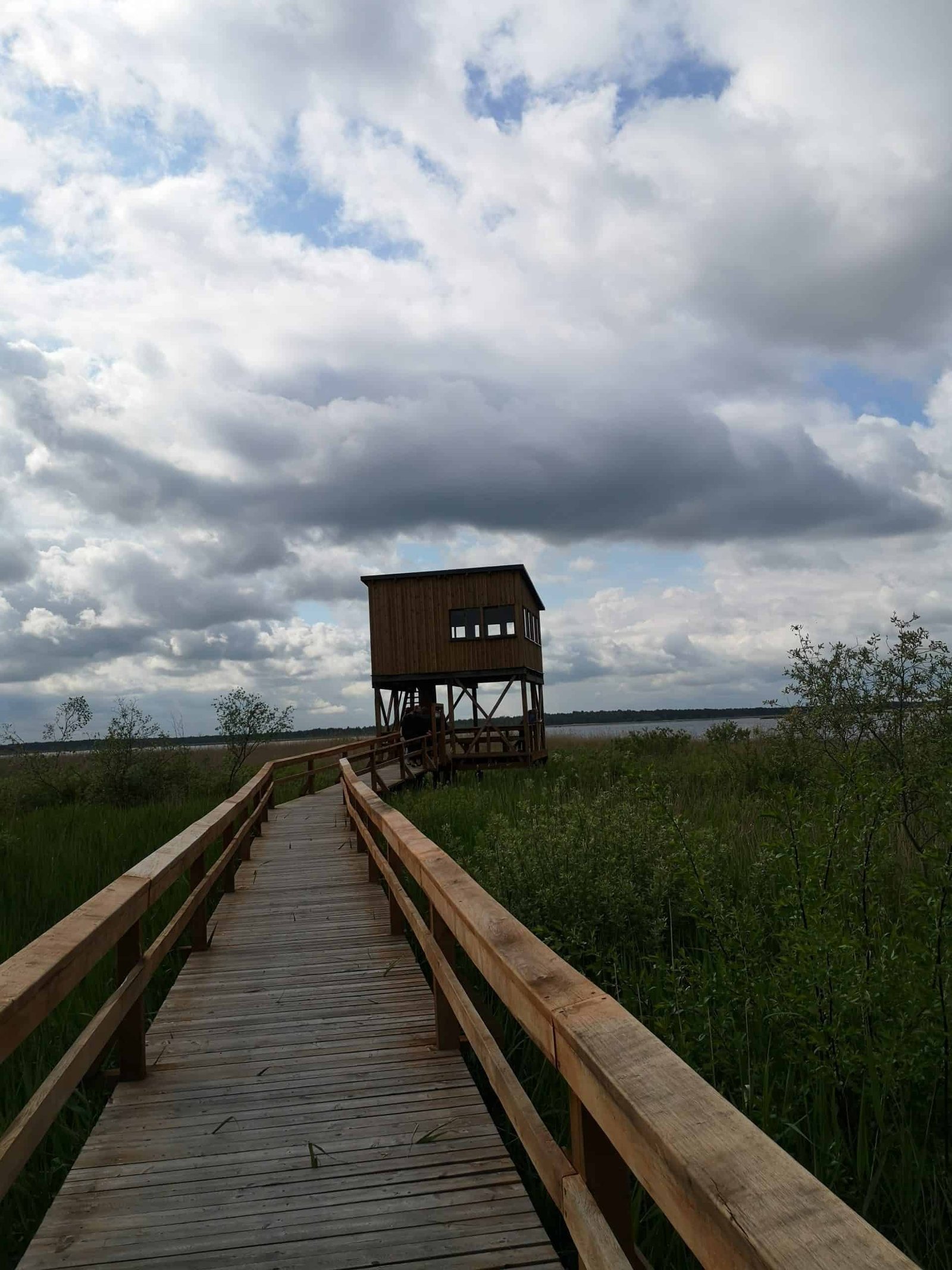 Upon arrival, when the visitor center is not working, you can take a walk on the nature trail of Lake Žuvintas. This path is quite short, but well-maintained, easy to pass with a stroller. The trail is equipped with information stands and a lookout tower-house. You will definitely hear a lot of birds around. When the Visitor Center is open, you can enjoy the views from the roof of the Visitor Center.