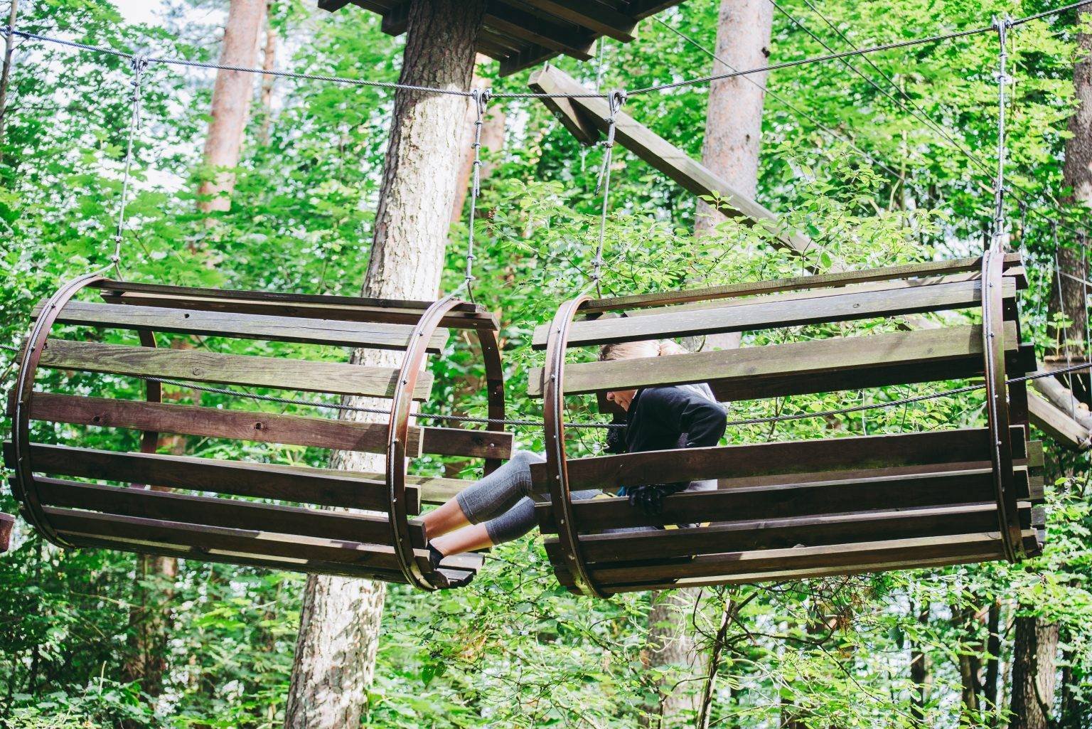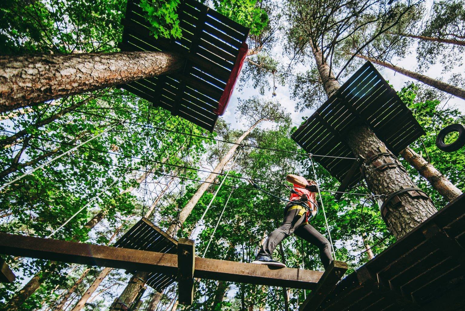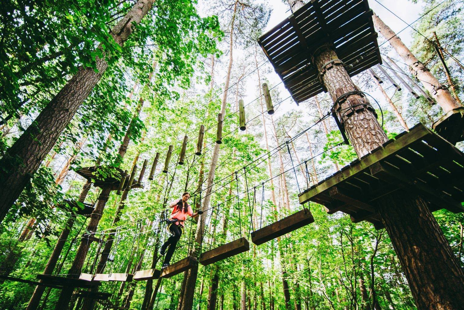 This is the best place to be active and enjoy nature. Visitors to the park will experience unforgettable impressions and spicy sensations as they go from tree to tree, over easy and difficult trails. Every visitor, no matter what their age or fitness level, will find the right trail for them. The park has 6 slopes of varying difficulty, with heights up to 13 metres. The most adventurous can enjoy the “Flight over Sventoji” with a total length of over 300 metres! It’s great to see that the park also has slopes that are suitable for younger children, with two “Toddler slopes”. If you still have the energy, you can try the 9-metre-high Kibi Wall. For the more extreme, there is the Big Swing from 13 metres high with a free fall of 2-3 metres.