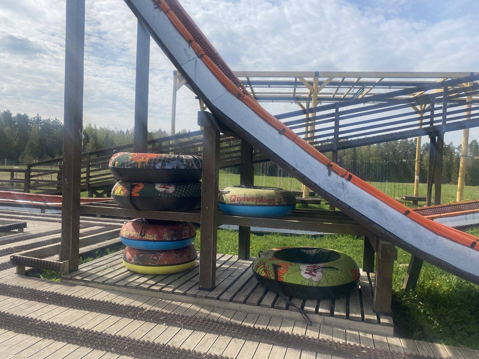 Probably the most famous and popular attraction here, and the one with the most visitors, is the toboggan run. Almost 500 m of the track features various turns, a loop, a springboard and fun slides. The toboggans fly at speeds of up to 40 km/h, so adrenaline and unforgettable impressions are guaranteed for both young and old. It’s great that the toboggans are open all season long. We can’t imagine both summer and winter entertainment in Anyksciai without these toboggans. There is also a tyre slide, children’s cars, a virtual reality and a café.