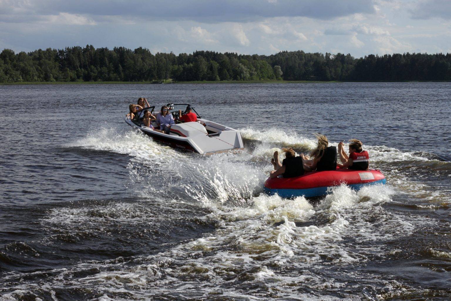 If you want to take a relaxing family trip on the lake, you’ll be accompanied by a boat captain. If you want to go wakeboarding or water-skiing, that’s great, you can do that here too. For those who want extreme sensations, Anyksciai Water Fun offers double, triple and quadruple water tyres (inflatable water rides pulled by a boat). For those who want a burst of adrenaline – parachute flight over the lake (for minors only with parental permission and participation, weight up to 90kg)