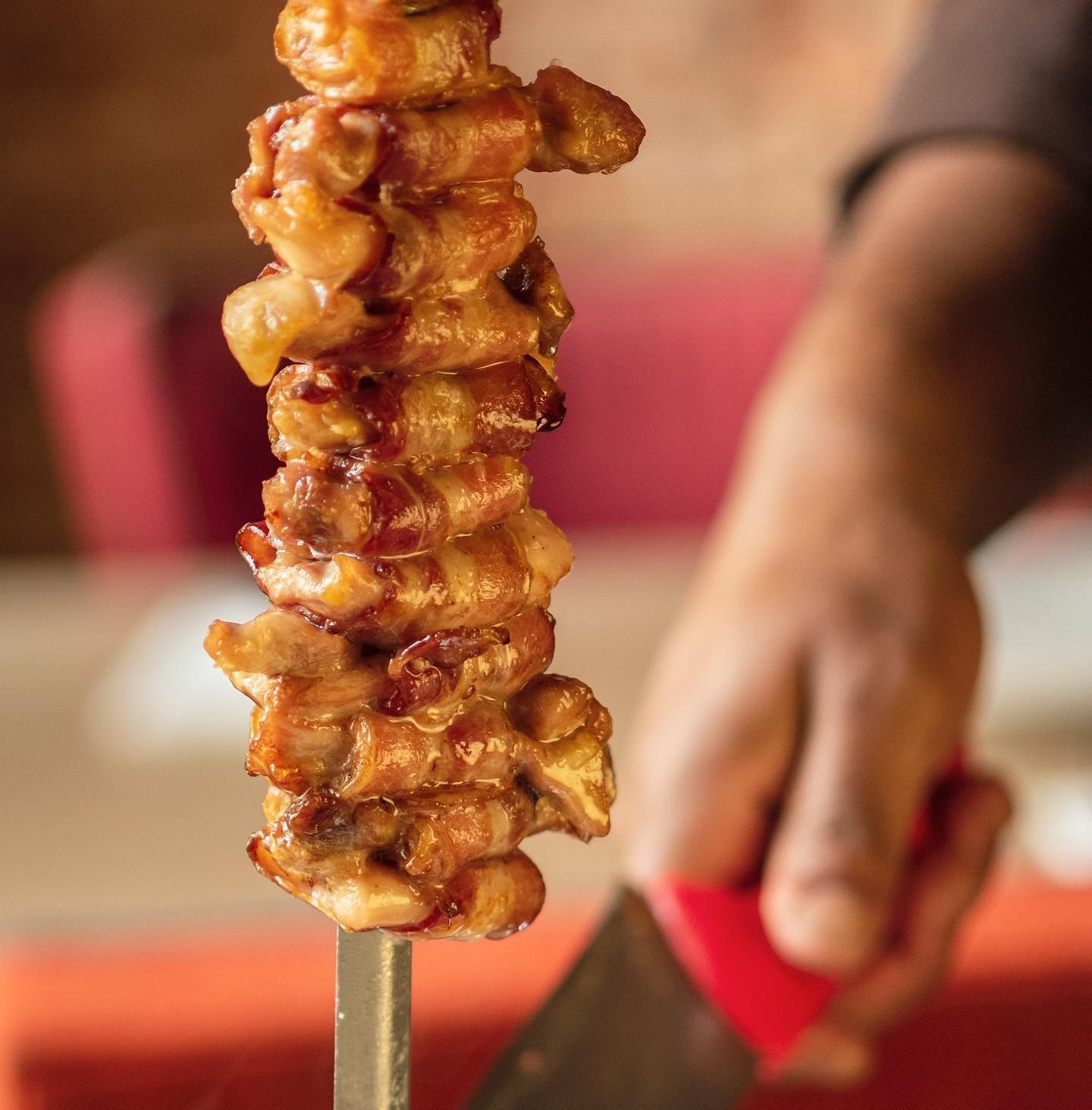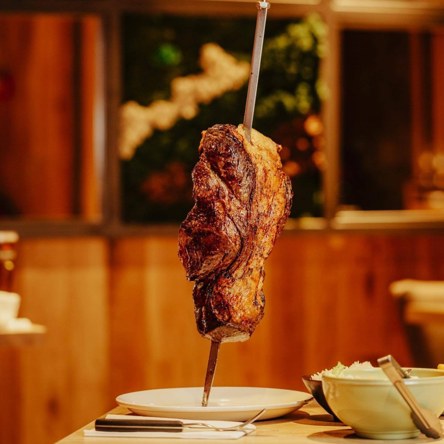 This is a typical Brazilian steak restaurant. Slow-roasted chicken, pork and beef.