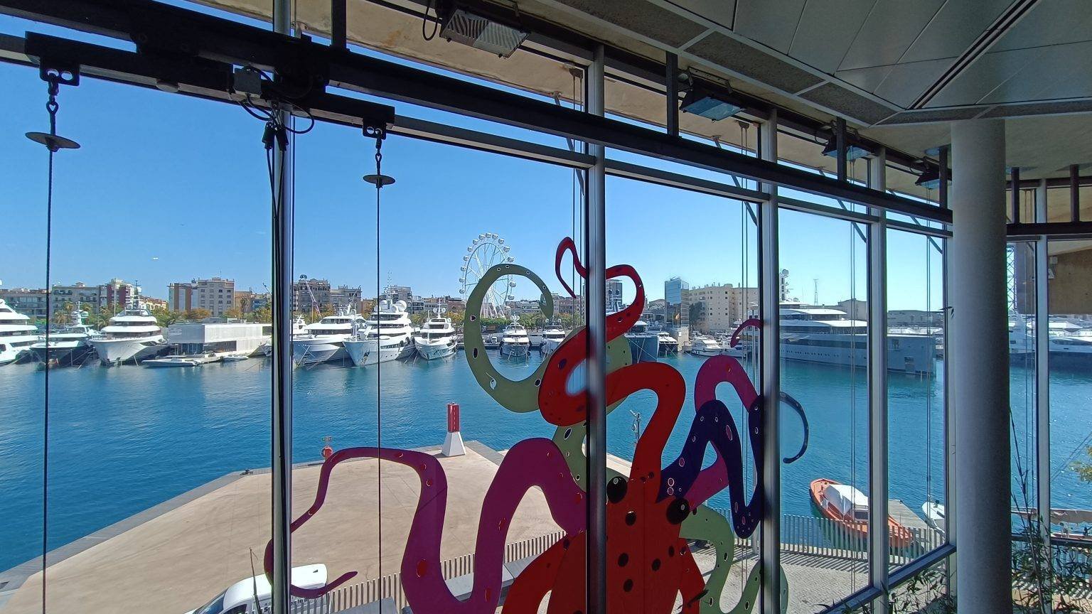 La Rambla de Mar is a waterfront promenade in Barcelona’s Old Quarter. It is a floating bridge that connects Plaça del Portal de la Pau with the Moll d’Espanya, where the Barcelona Aquarium and the Maremagnum Shopping Centre are located. It is considered a natural extension of the Rambla.