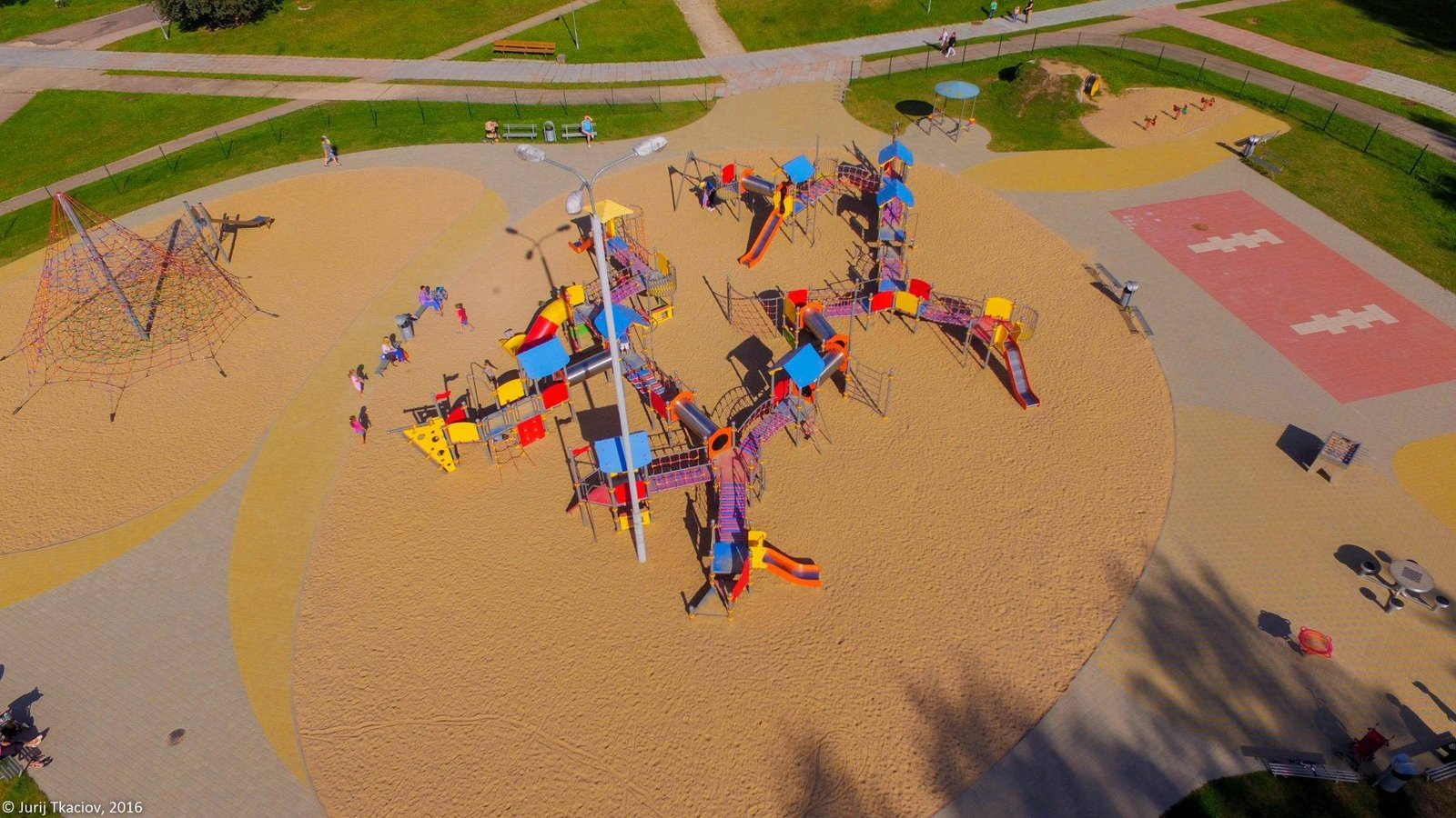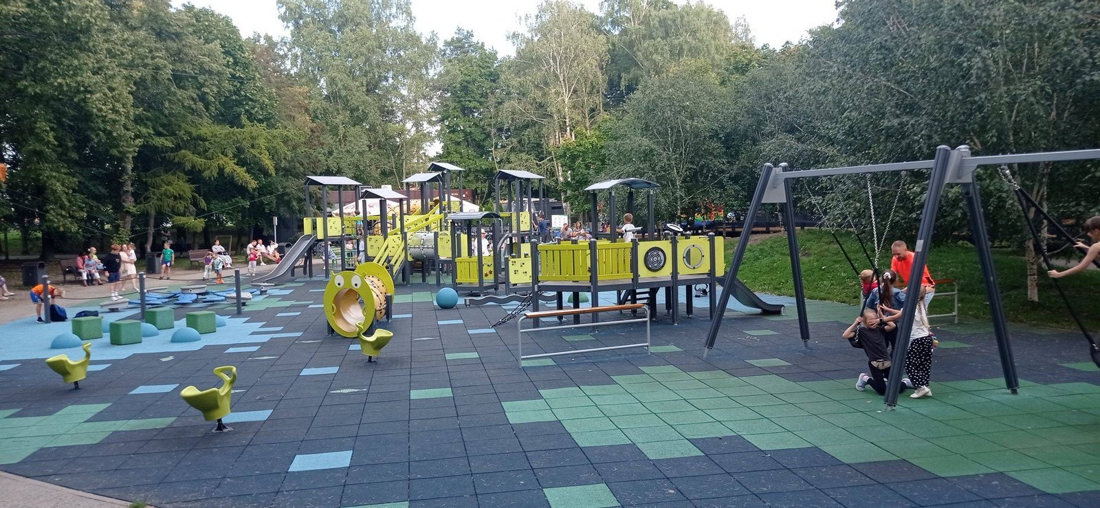 The whole area is fenced off, with surveillance cameras and lighting to keep little ones safe. All the equipment is made of laminated wood and plastic, and the playgrounds are filled with seaside sand. There is a café nearby and plenty of benches. Perfect place with children.