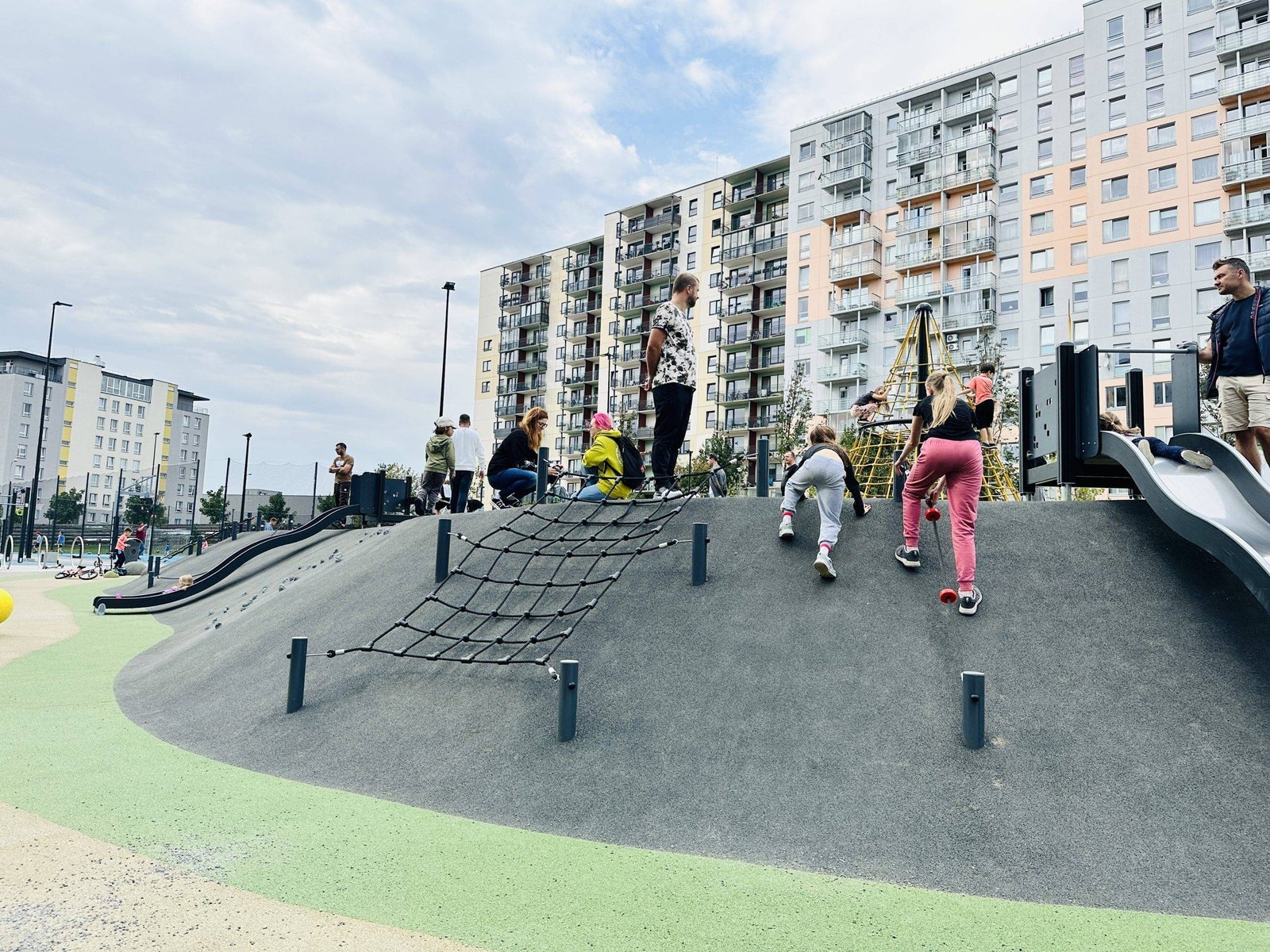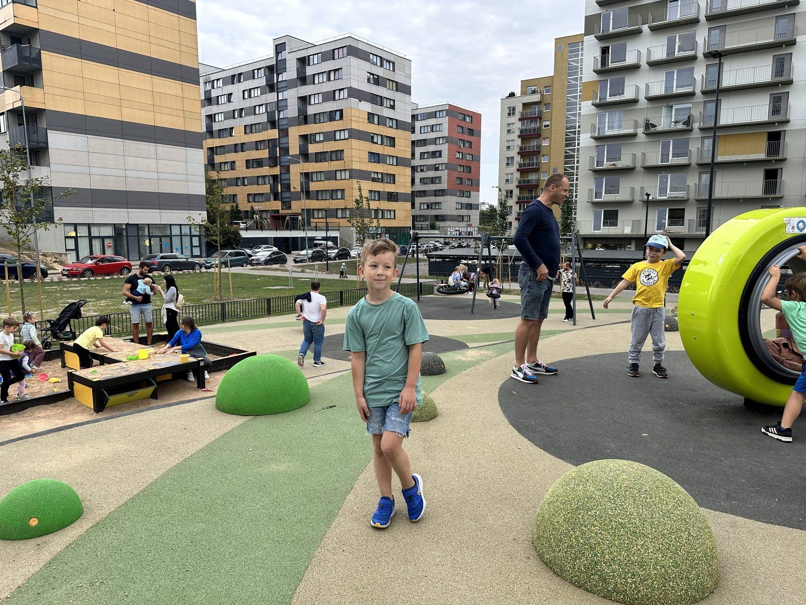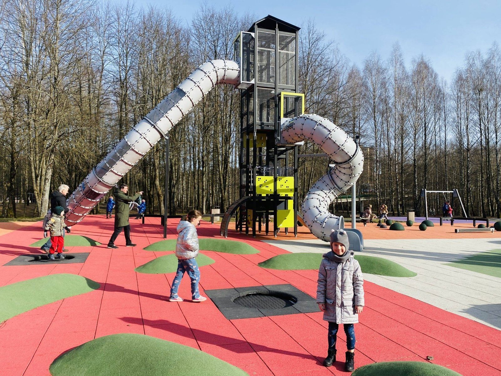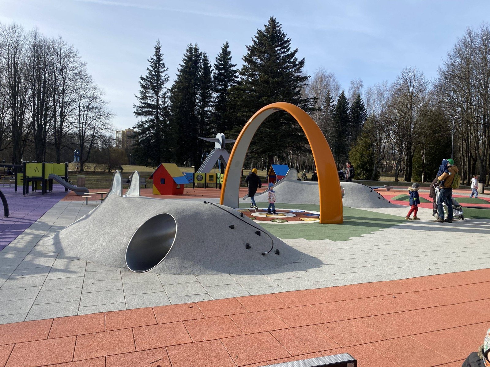 One of our son’s favourite playground near Vilnius, where we often come to ride his scooter on a huge asphalt pumptrack for bikes, skateboards, scooters and rollerblades. This leisure space also has a soft play area with lots of swings, steps and slides for young and old. There is also a basketball court, volleyball court and mini football pitch.