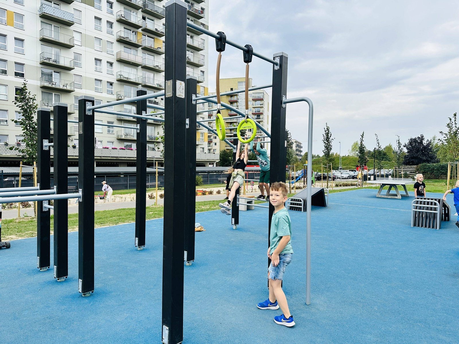 Vilnius Perkunas Square, Located in the middle of a residential area, is divided into 7 zones. There are many sports and leisure areas, chess tables, hammocks, a picnic area with barbecues. In addition to these, there is a cool outdoor playground for children from 1 year old. There are sandboxes, slides, climbing frames, swings,and a rotating play ring that has never been seen anywhere else in Lithuania. The inside can be turned upside down when you sit down, recommended for older children.