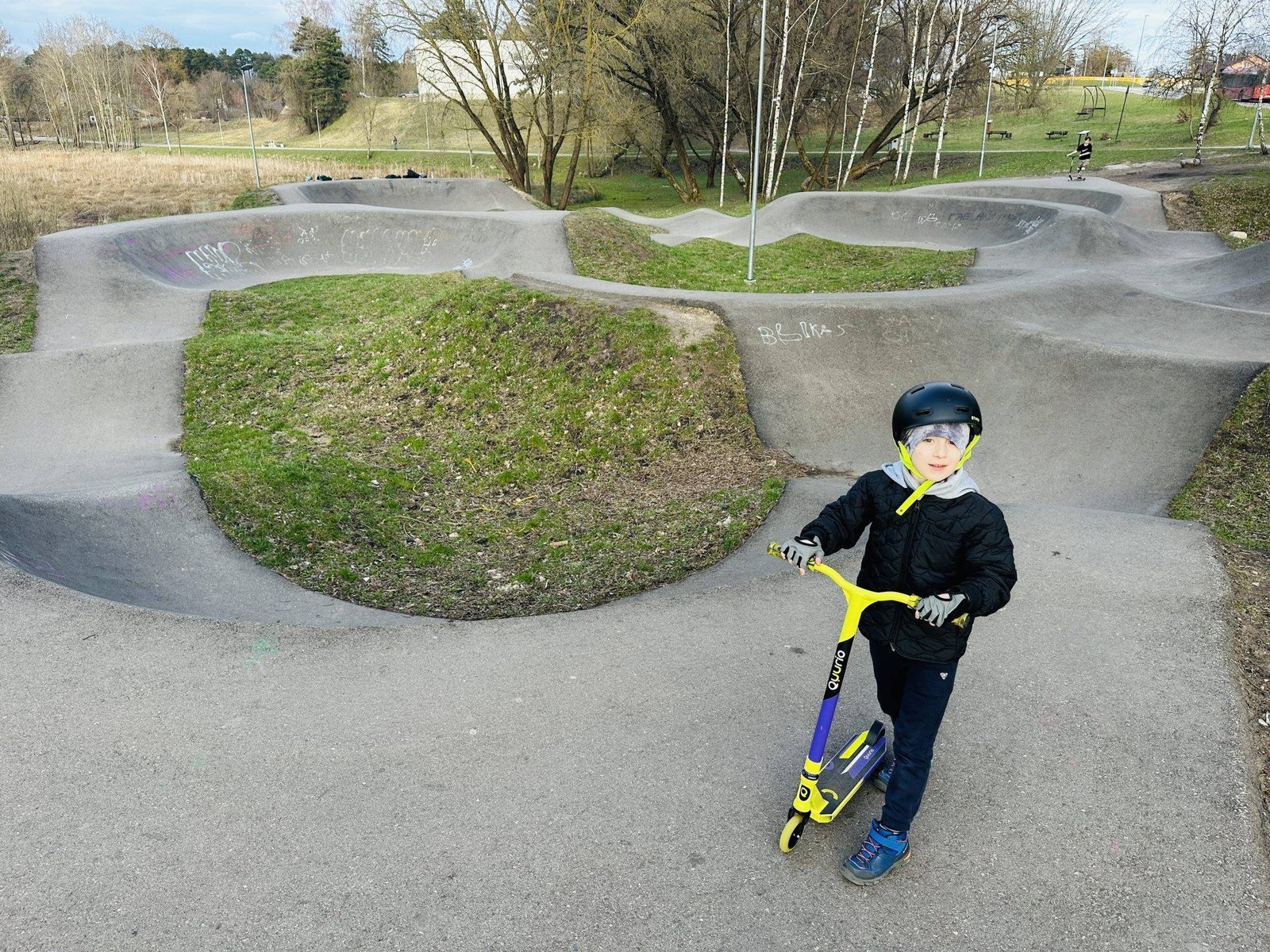 This pumptrack is probably the biggest in Vilnius. Motiejus simply adores this place. If we come here, it’s for a long time. The track is huge – you can easily ride here with a grown-up bicycle, not to mention the space for children with all their vehicles.