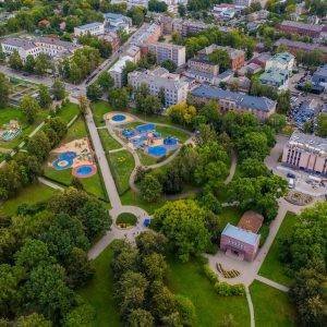 Located near the bus station. This modern park is a green decoration of the city, with flowers and greenery as its accent. There is a children’s playground, a shooting range, a chess club, which houses the Museum of Chess and Checkers. In 2012, Suolelių alėja and the Tree of Love were installed in the park. Daugavpils Ice Hall is nearby.