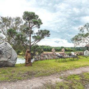 The well-equipped park is located in a picturesque location on the Daugava coast, surrounded by a forest, in the territory of the “Daugavas loki” nature park. Various events can be organized in the park. There are children’s playgrounds, outdoor barbecues, tables, terraces, gazebos, etc. The recreation park can be visited by several groups of tourists at the same time – the recreation area is arranged so that several groups of tourists do not disturb each other. The forest park is equipped with unique objects in the form of a fortress. Tourists are given a great opportunity to get acquainted with the interesting things of the forest park and the mysterious history of its creation.