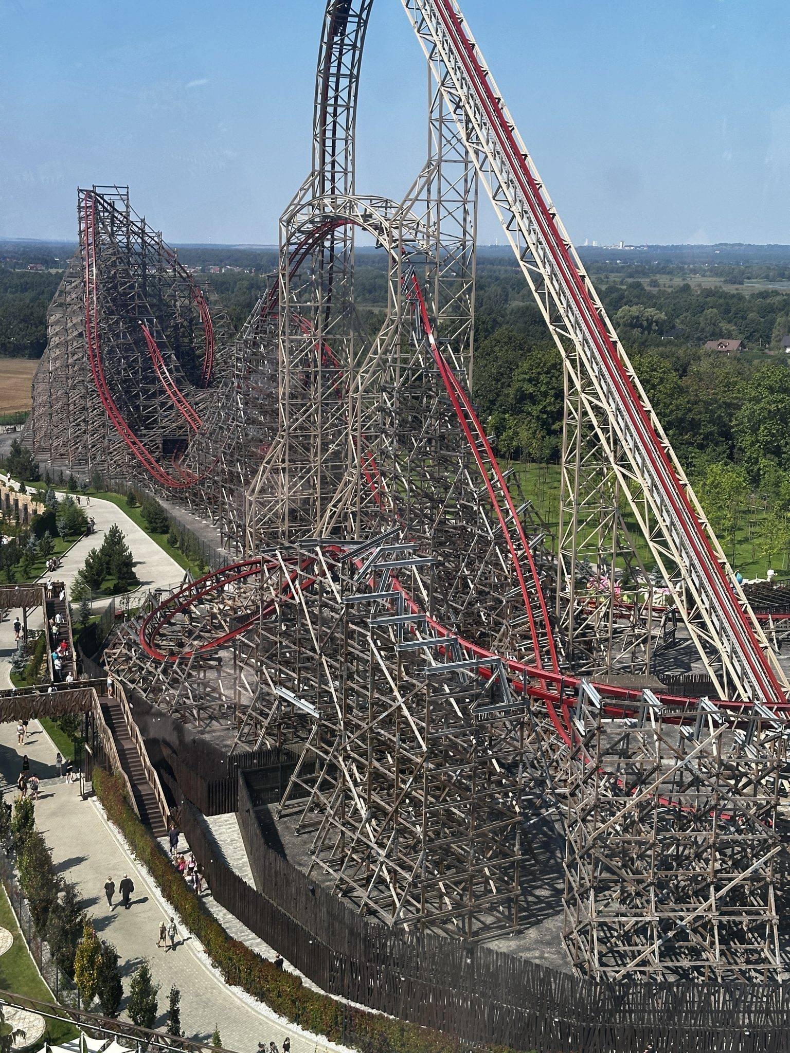 This area is probably the most impressive in terms of its decor – houses, dragons, medieval atmosphere. The main attraction of Smoczy Gród is the world’s highest wooden roller coaster, the Zadra. With a top speed of 121 km/h, a height of 62.8 m, a length of 1316 m and a slope of 90 degrees.