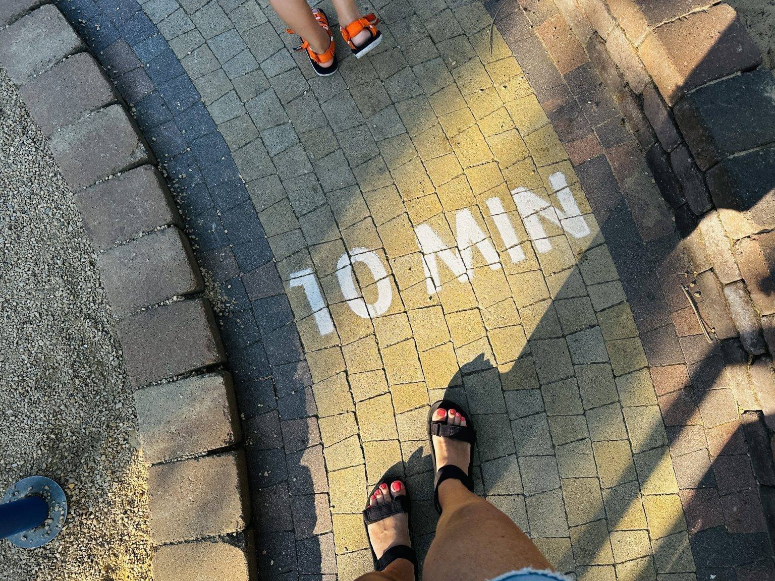 It is very handy that at all the big rides there are signs on the ground at the queue showing how much time is left to wait, which is especially good for children, and helps them to keep track of how much time is left.