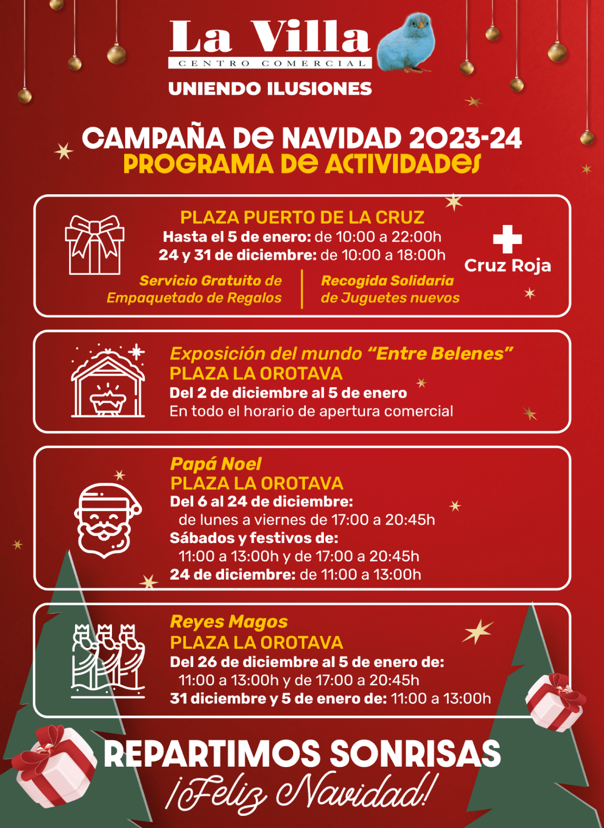 - Santa’s arrival and procession. December 23 6:00 p.m. Location: St.: Plaza Cézar Manrique;
