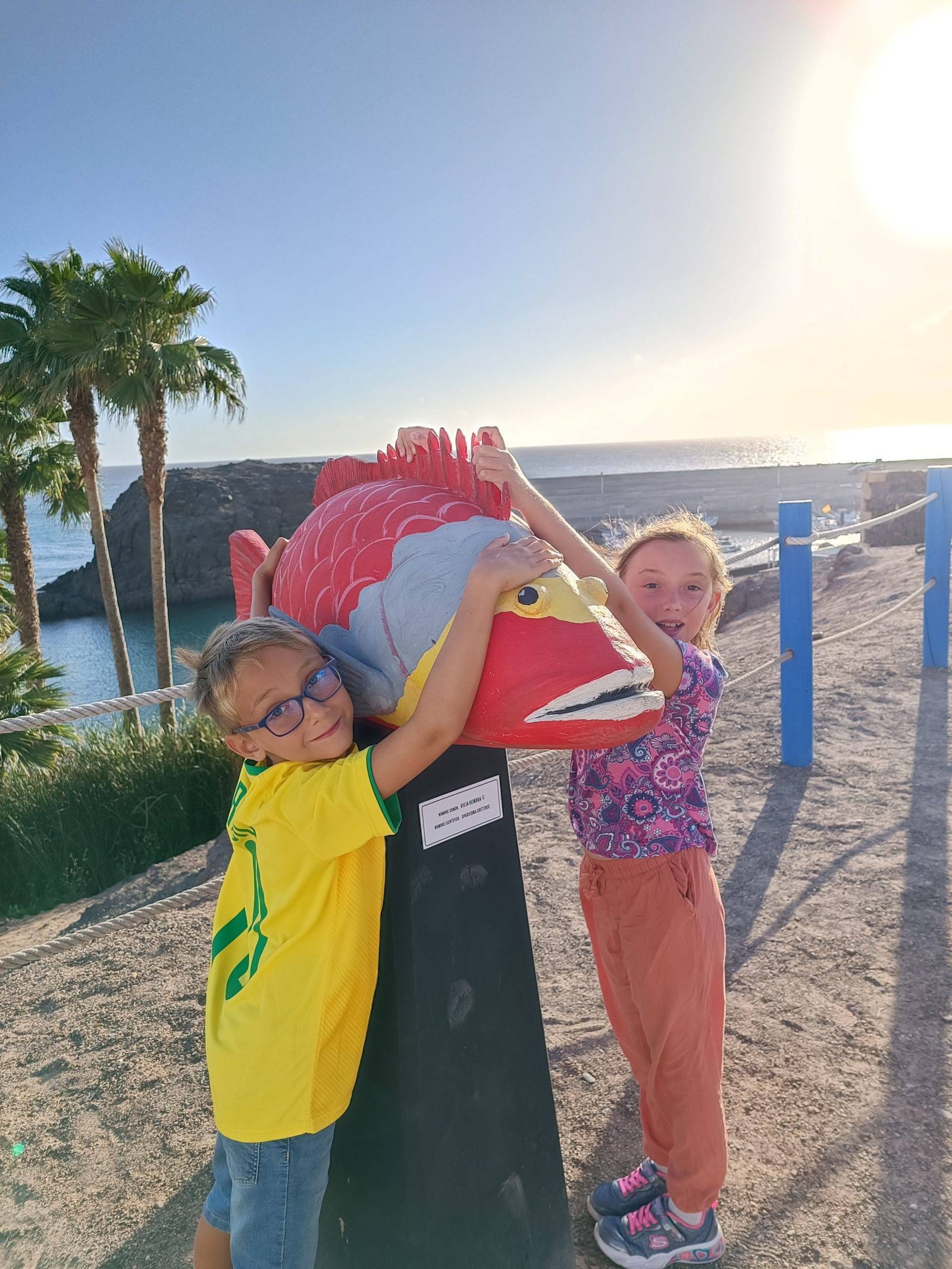 In the town you will also find colorful sculptures of local fish, which the children really liked.