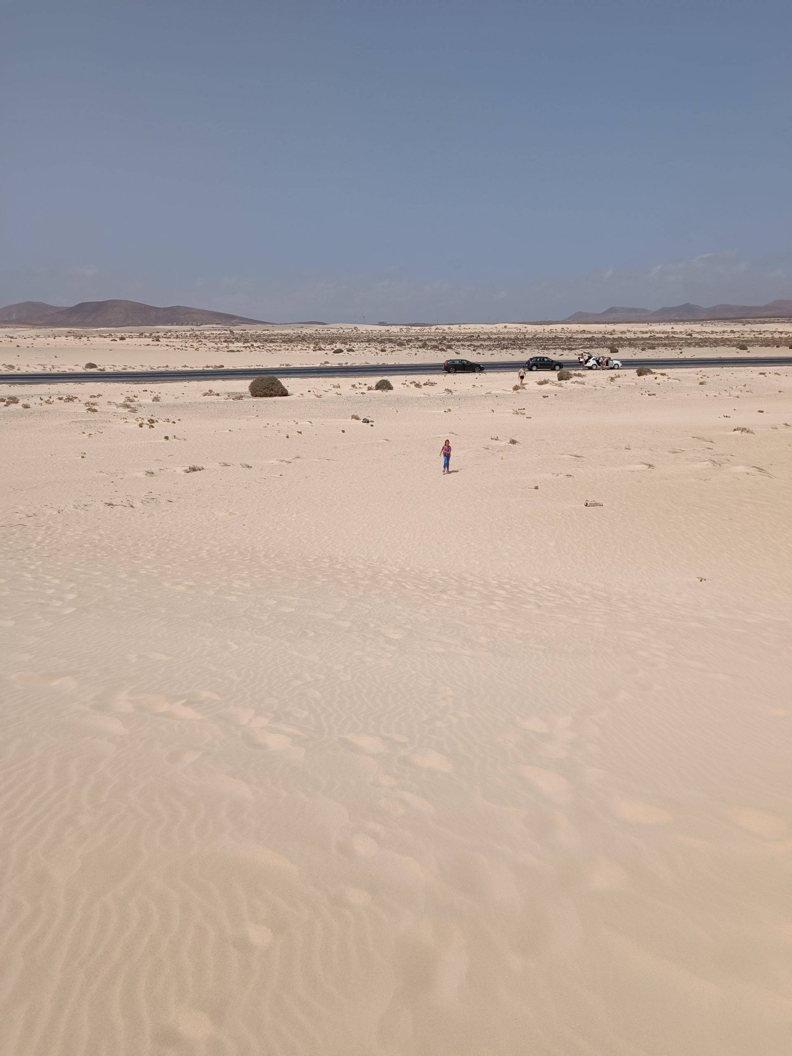 This is a huge sand dune park. Parque Natural de las Dunas de Corralejo is one of the most impressive and valuable natural sites in Fuerteventura, Canary Islands. Located in the north of the island, near the resort of Corralejo, this national park is known for its spectacular sand dunes.
