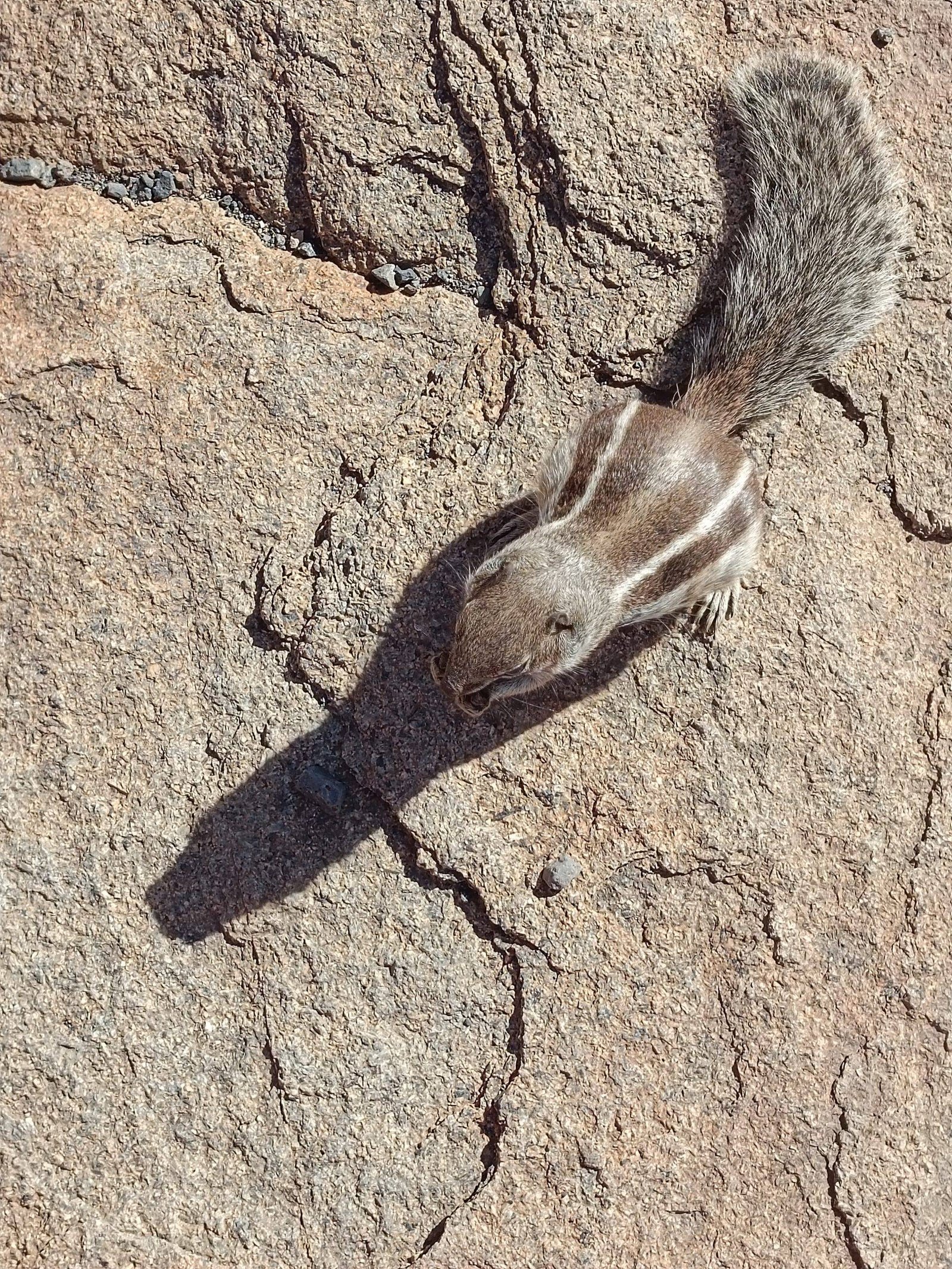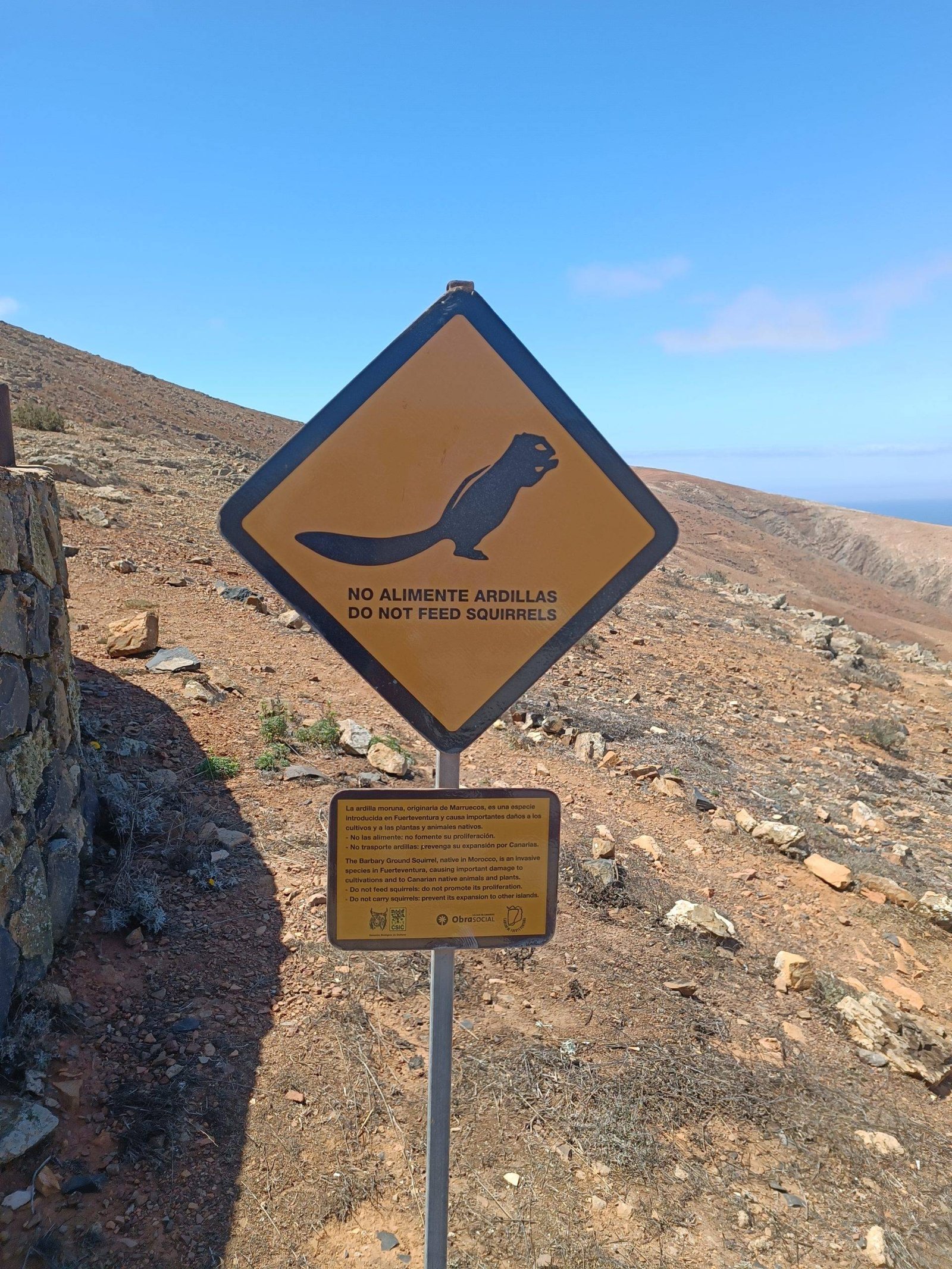 These are Barbary squirrels from the mountains of Morocco, which are an invasive species and are classified as pests and parasites. In 1965 someone brought a pair of Barbary squirrels to Fuerteventura as pets. After the female escaped, he decided to release the male, and now there are more than a million of them on the island. This is now a huge problem as they have no natural predators on the island and compete for the same resources as Fuerteventura’s native species.
