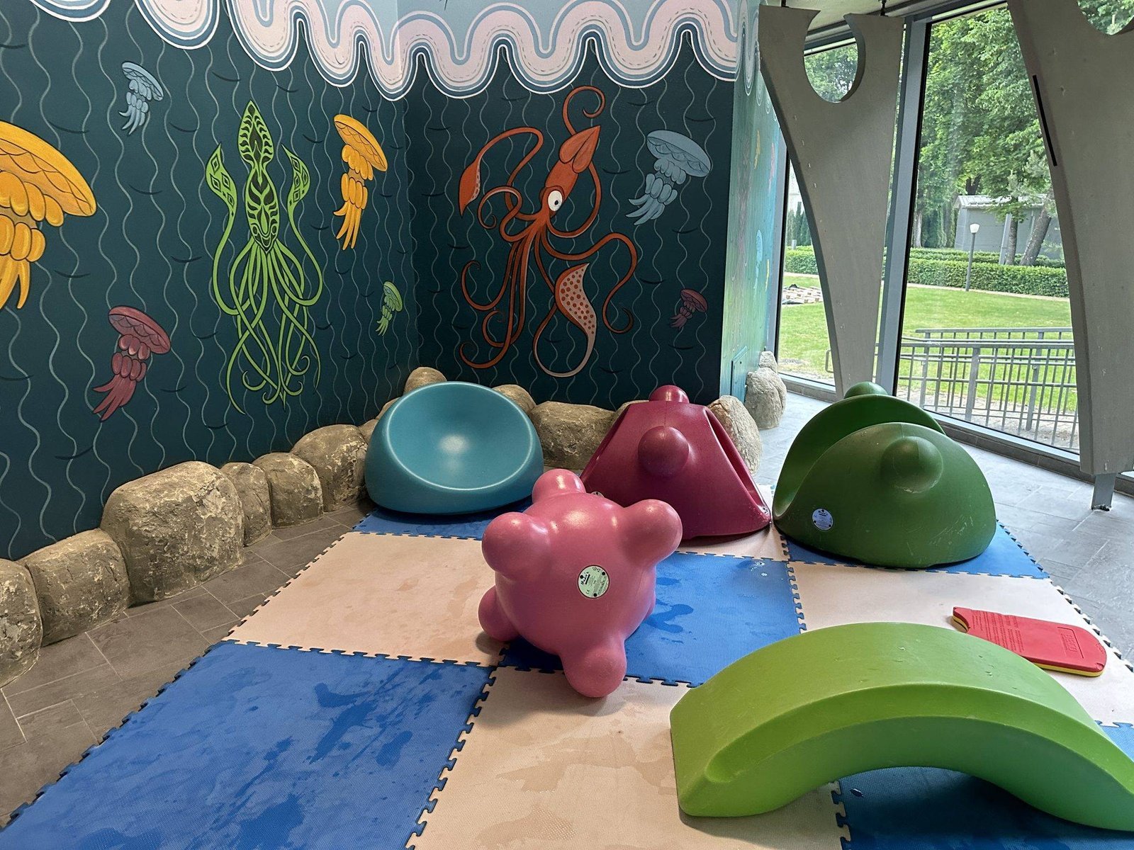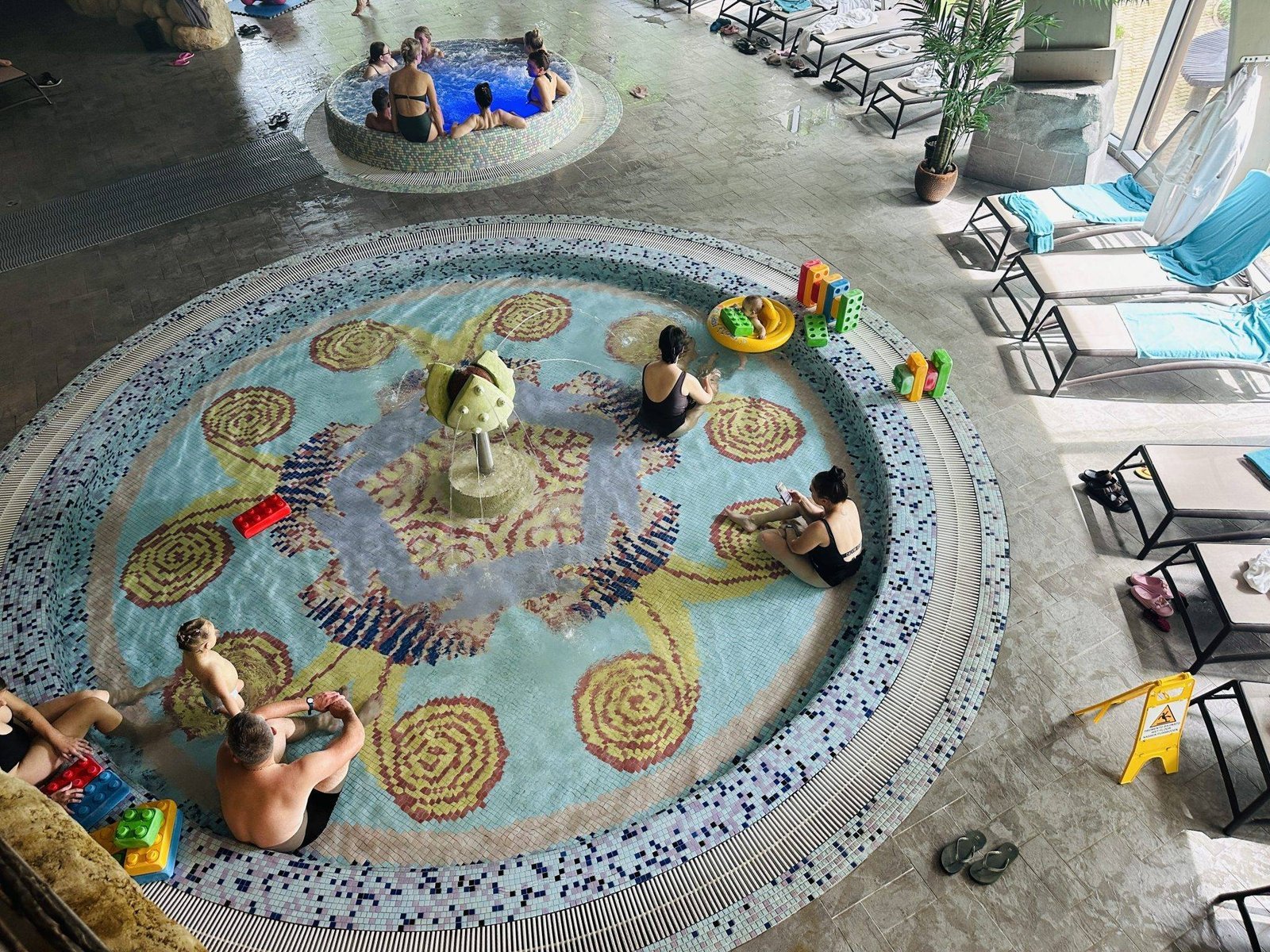 It’s great that the children’s pool includes fun toys, like floating Lego-type pieces. There’s also a nearby playground specially designed for the water park. It’s thoughtful that details like this have been considered, and it’s convenient that a whirlpool is located next to the children’s pool, allowing you to comfortably watch the kids while they play.
