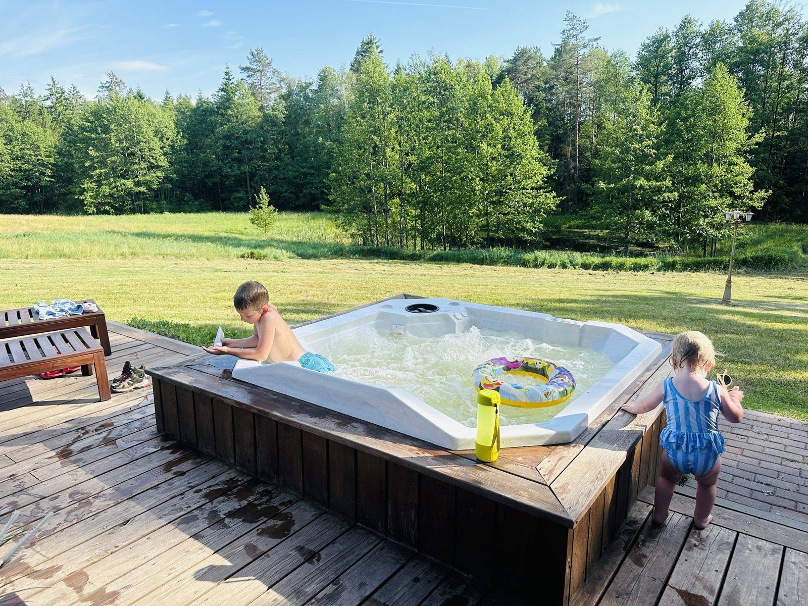 Various villa complexes with different accommodation options are located throughout the park. For our upcoming holiday, we visited several villa complexes. The big advantage is that there are several different villas with different accommodation options. We really liked the villa complex “Romove”. There is a large 12-bedroom house, a 4-bedroom house and three 2-bedroom houses. Just perfect for private holidays. The villas are set far apart from each other, so complete privacy is guaranteed. The villa complex we visited, Romove, also has a volleyball court. We were impressed by the fact that some of the villas have jacuzzis, ponds, saunas and hot tubs. Everything is simply designed for a perfect holiday – whether you are a couple looking for a romantic break or a family.