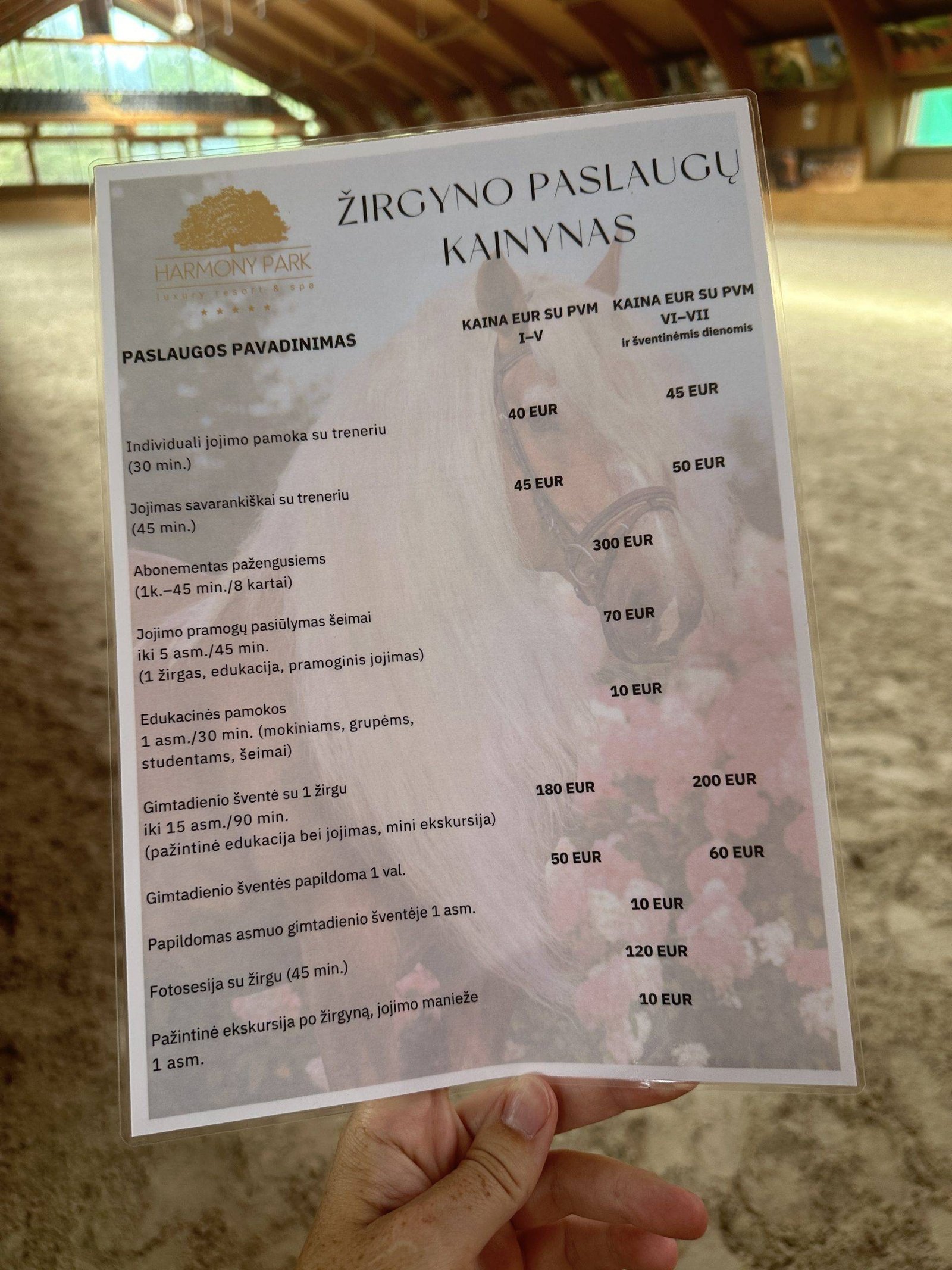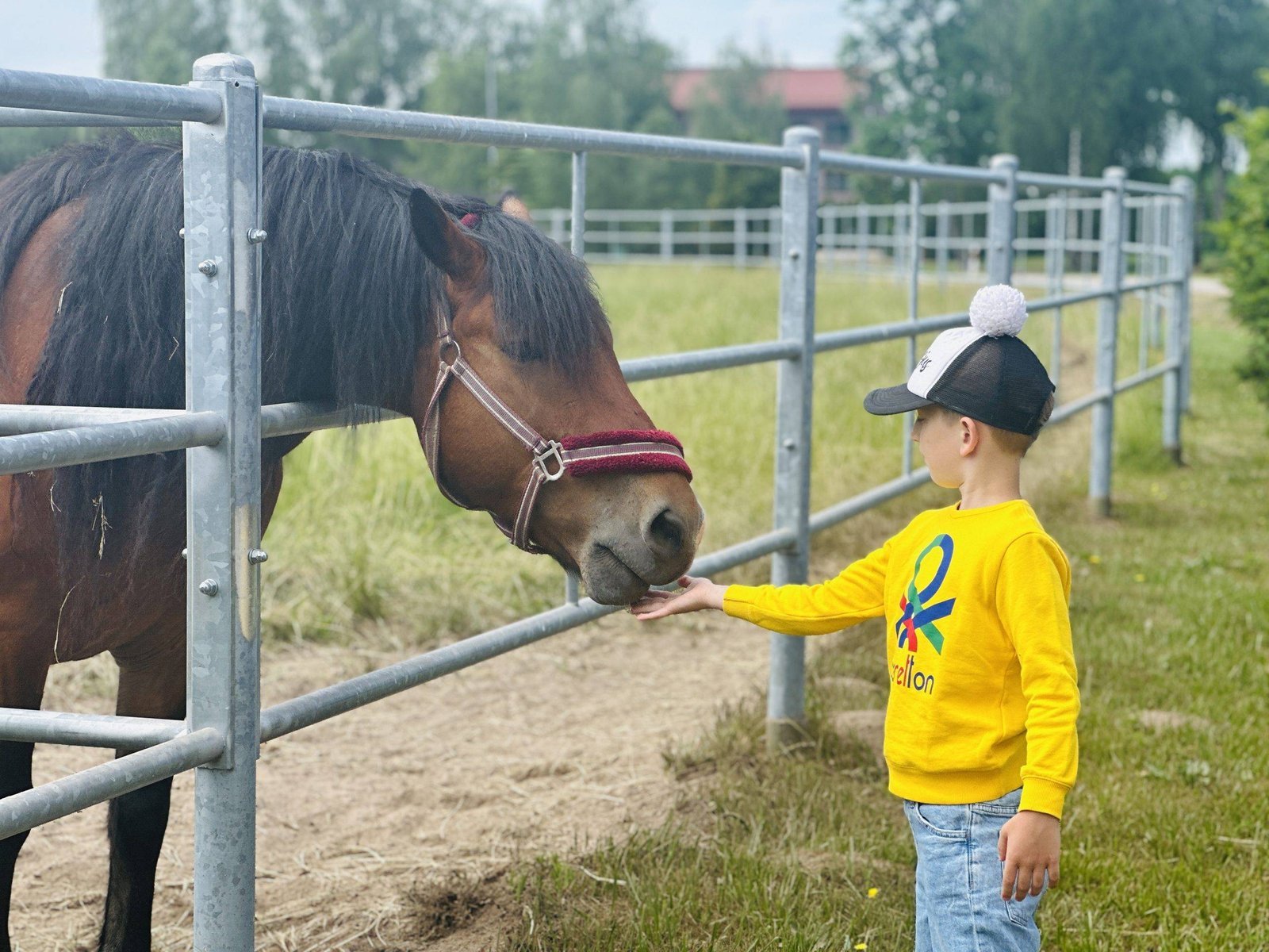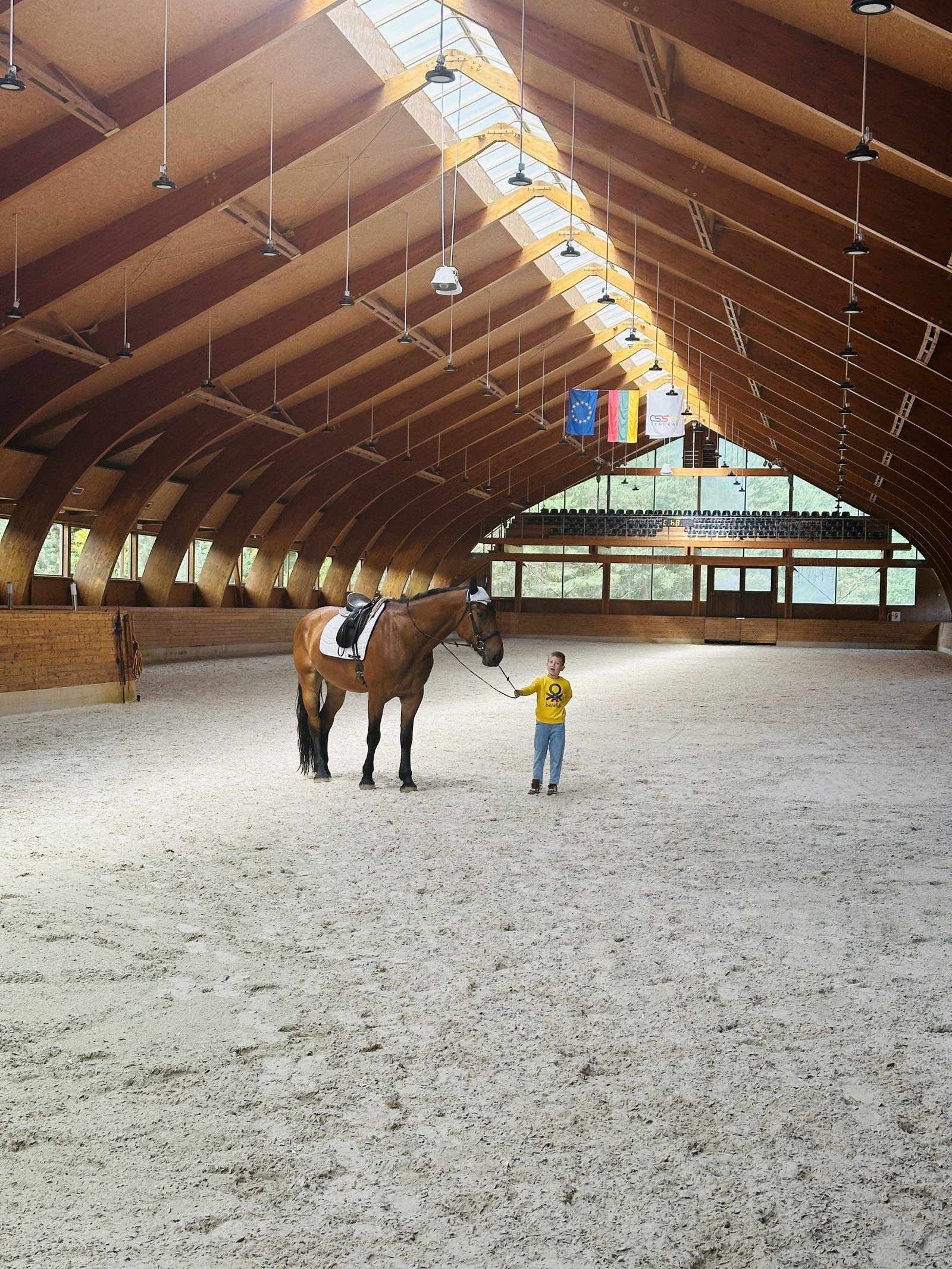 We have visited many horse stables all over Lithuania, as Motiejus and his dad love horse riding. The “Harmony park” Stud and all the facilities are simply spectacular. From the indoor arena to the outdoor open fields, to the very competent trainers and the great horses. We had booked a riding lesson and a tour of the stables, we fed the horses and the trainer told us lots of interesting things.