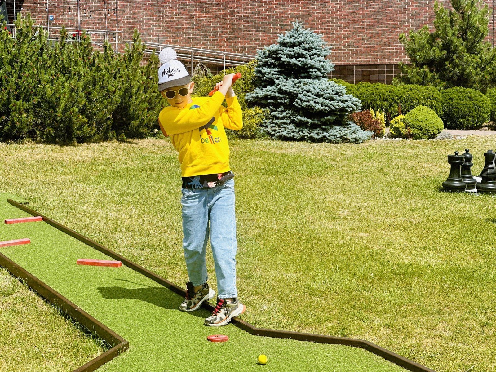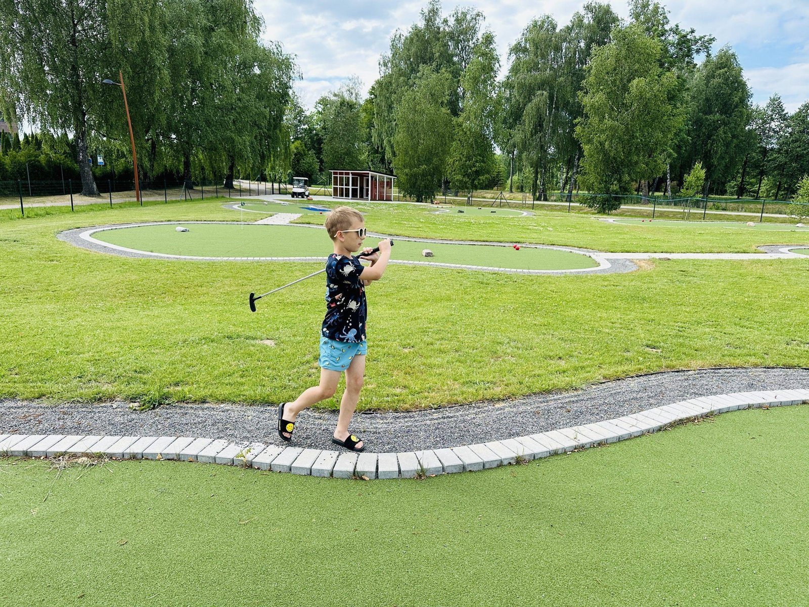 There are also mini-golf courses. If you’ve been following us for a while, you’ll know that we love mini-golf. So of course we didn’t miss the opportunity to play mini golf at Harmony park. An hour of play here costs just €5. And most importantly, everything in Harmony park is thought out down to the last detail. You can drive to the mini-golf courses in a real golf cart. The experience for children is unparalleled.