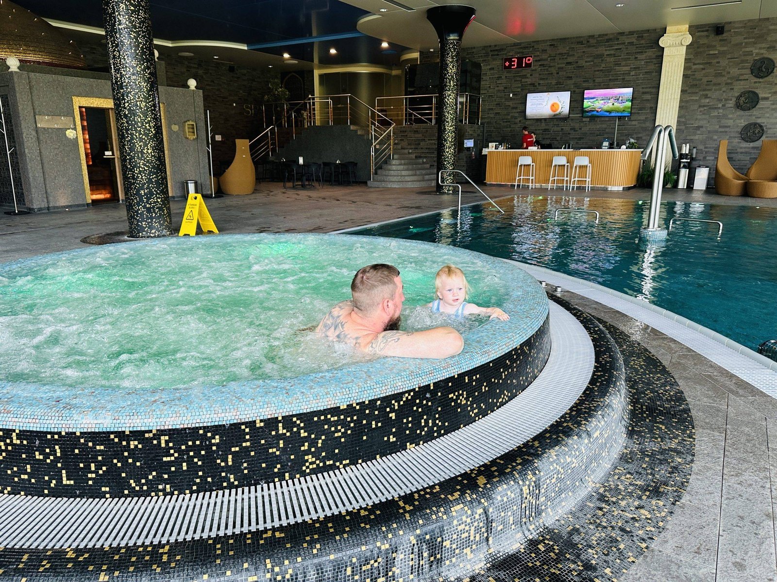 There’s a leisure pool with cascades, massage bays and underwater geysers, a 25-metre swimming pool, a cold-water pool for refreshing yourself after a sauna, and a jacuzzi. There are also four saunas – sauna, steam, infrared, Kelo log sauna (not open all days). The pool and spa area itself is very nice, the steam room alone is like a tale from a thousand and one nights.