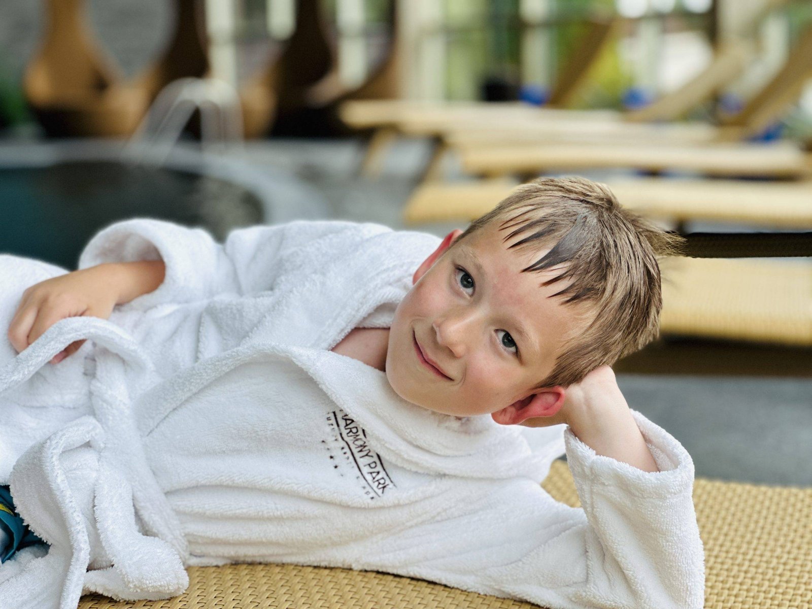 We love swimming pools with children – and the Harmony park pool and sauna area is really special and extremely beautiful. For us, when travelling with children, it’s very important that not only the pool water is warm, but also the pool environment. Everything in the Harmony Spa is perfect for children, from the changing rooms with changing tables to the extremely warm pool environment. There’s also a separate corner with all the pool essentials for children – diving goggles, flippers, wheels. So don’t worry if you don’t have one or have forgotten yours.