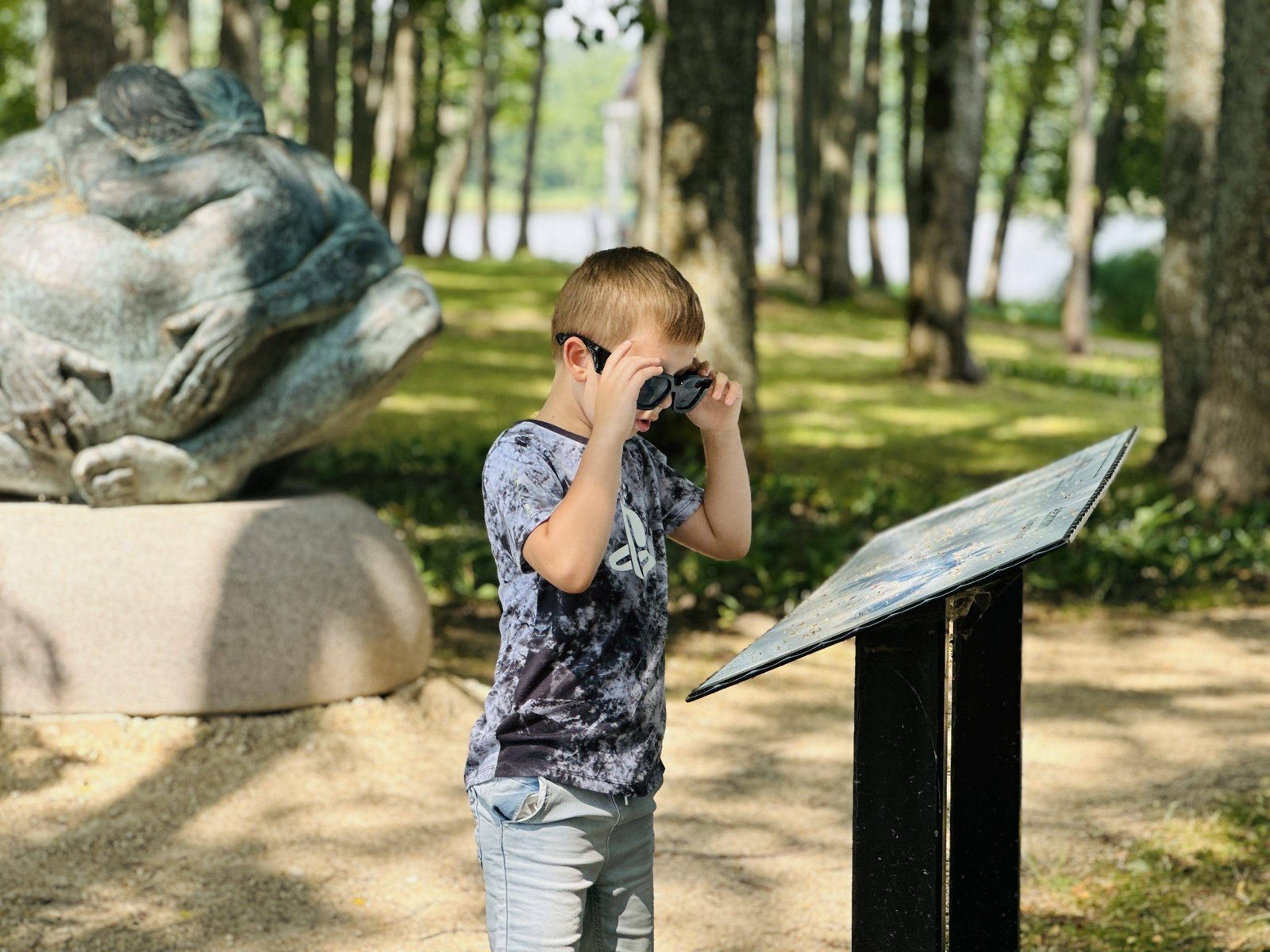 The estate itself and its grounds are impressive, and it’s a beautiful place just to walk around. And then there’s swimming in the lake. And there are lots of interesting activities and games for children. And then there is the interesting fact that there is a Lithuanian/Latvian border marker on the territory of the estate.