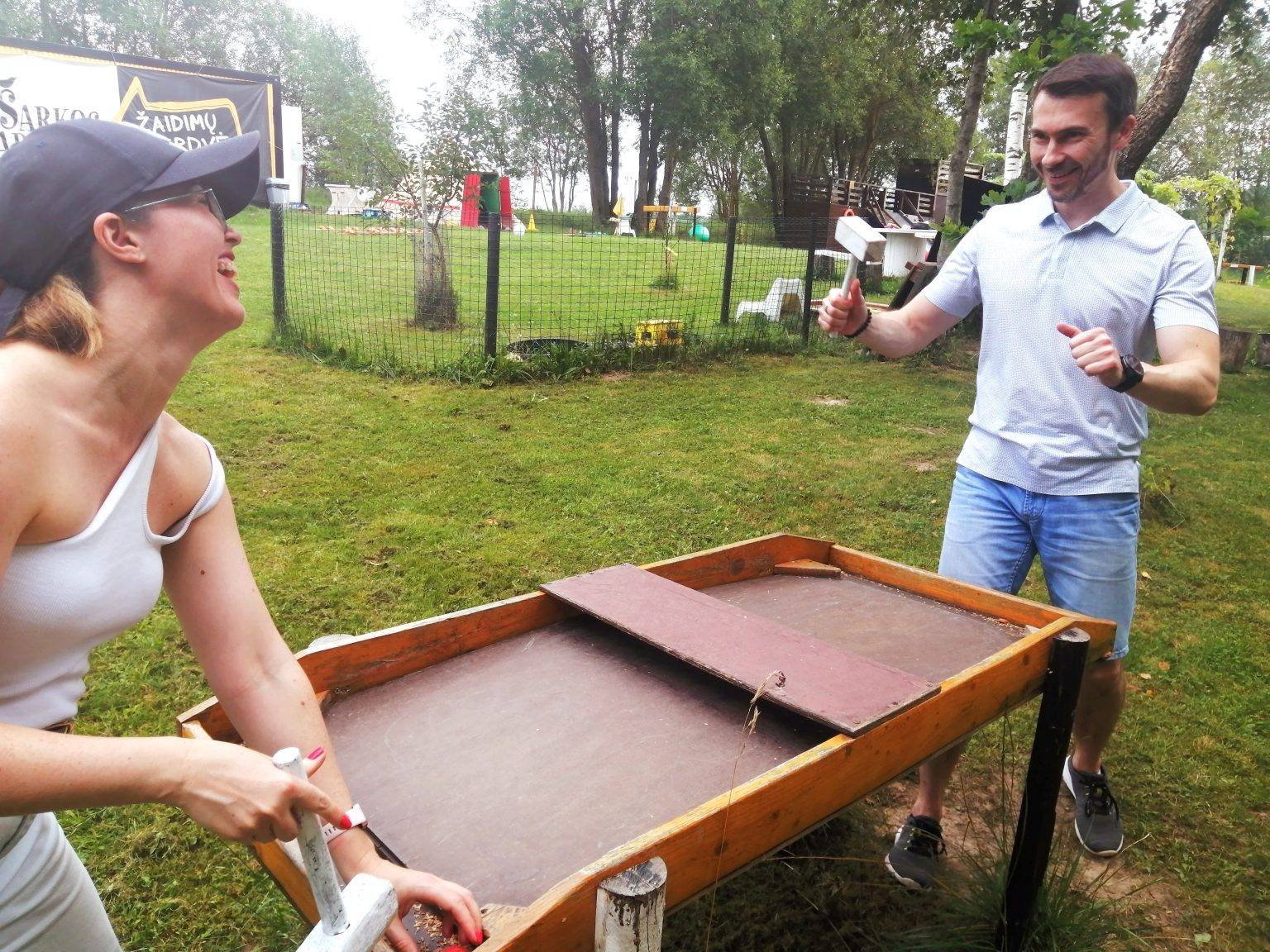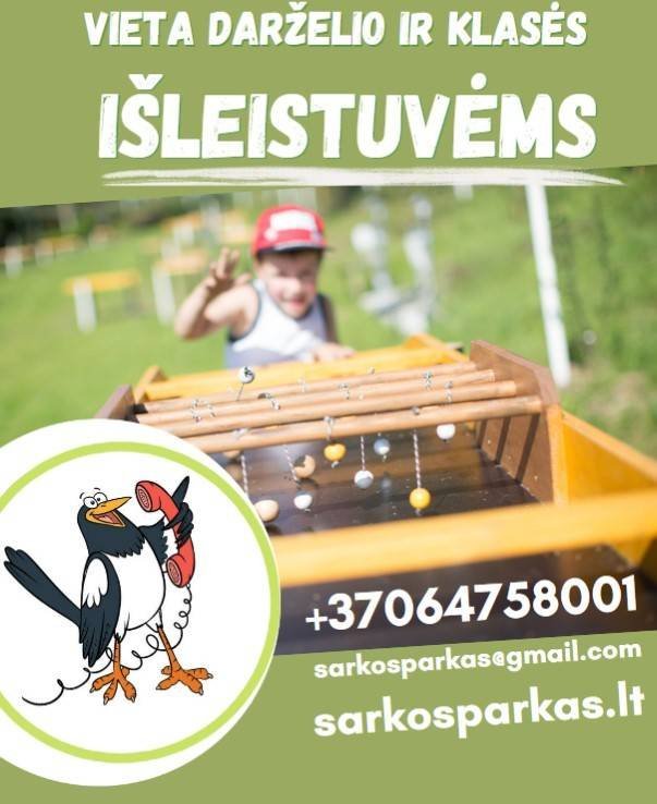 Sarkos (Magpie) Park is an open-air entertainment space located between Vilnius and Molėtai. It has more than 60 different game tables, Santa’s summer house, the Witch’s House, Hobbit Rocks, a lawn inhabited by fairies and elves, gazebos and more.