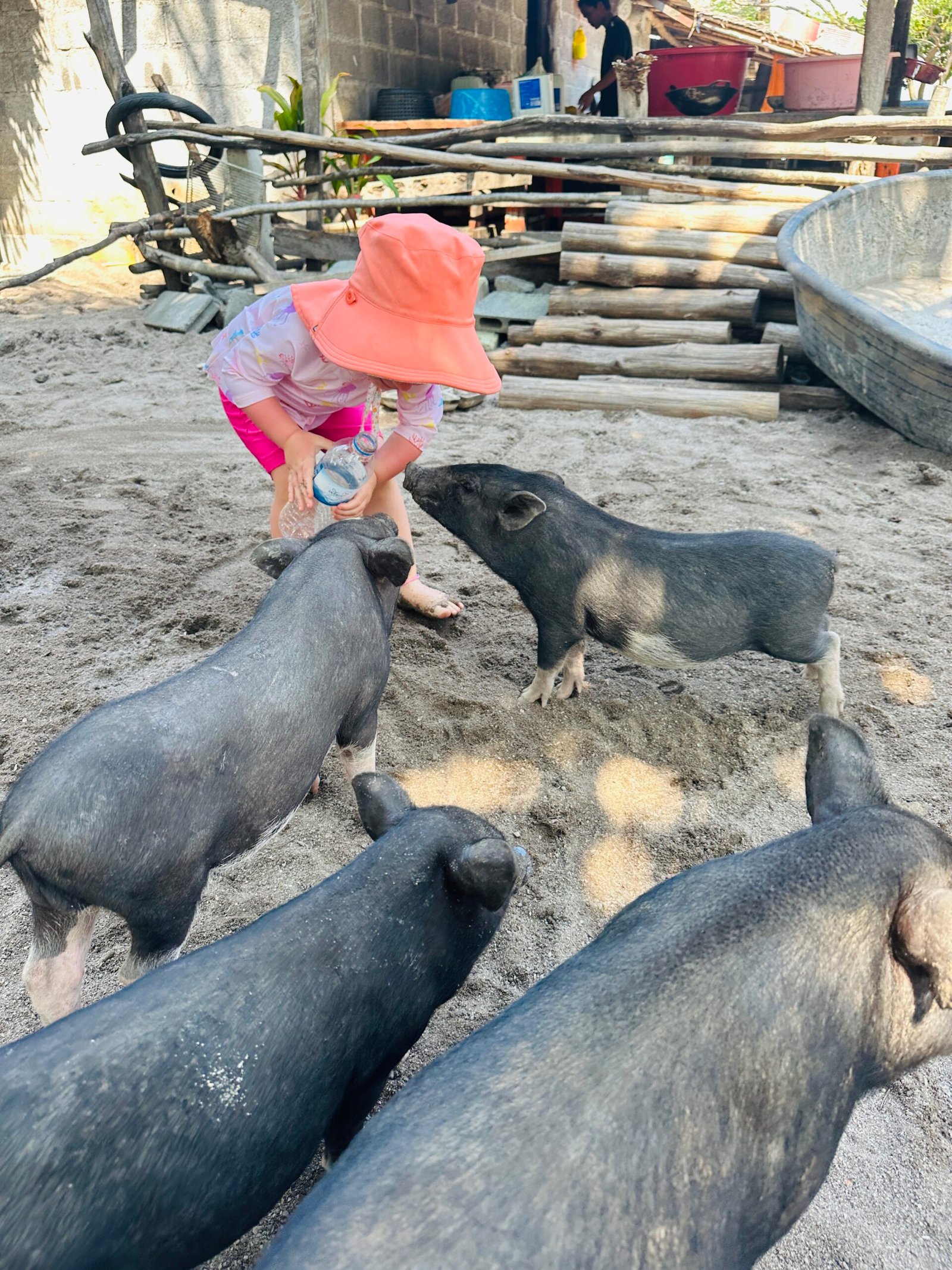During the hottest hours, when most tourist boats reach the island, the pigs usually hide in the shade. Later, around 2:00 to 3:00 p.m., they come back to the beach and swim again. Therefore, if you go by private boat, you will see many more pigs and have a much more unique experience. We highly recommend it, because our children absolutely loved it.
