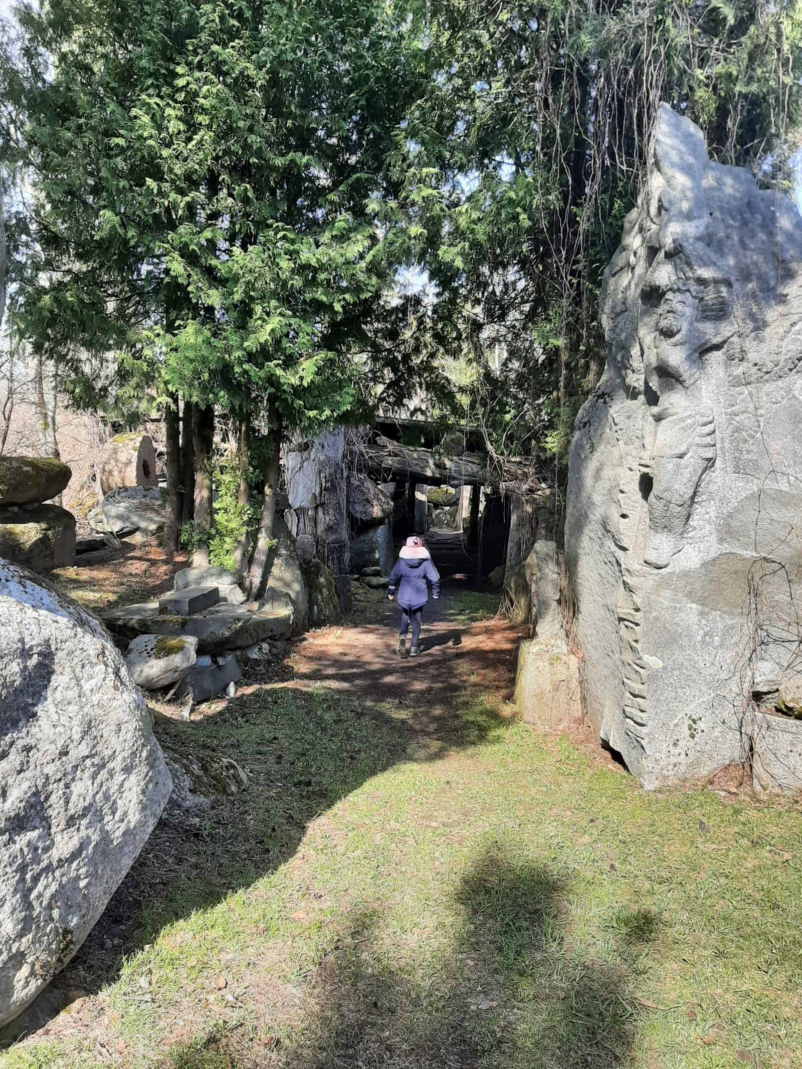 Visiting the mounds is difficult to combine with small children, because you have to climb a lot of steps, and it is not always convenient to get there. You will not pass with a baby carriage. Because there are stone paths, stairs, where we walked after leaving the carriage.