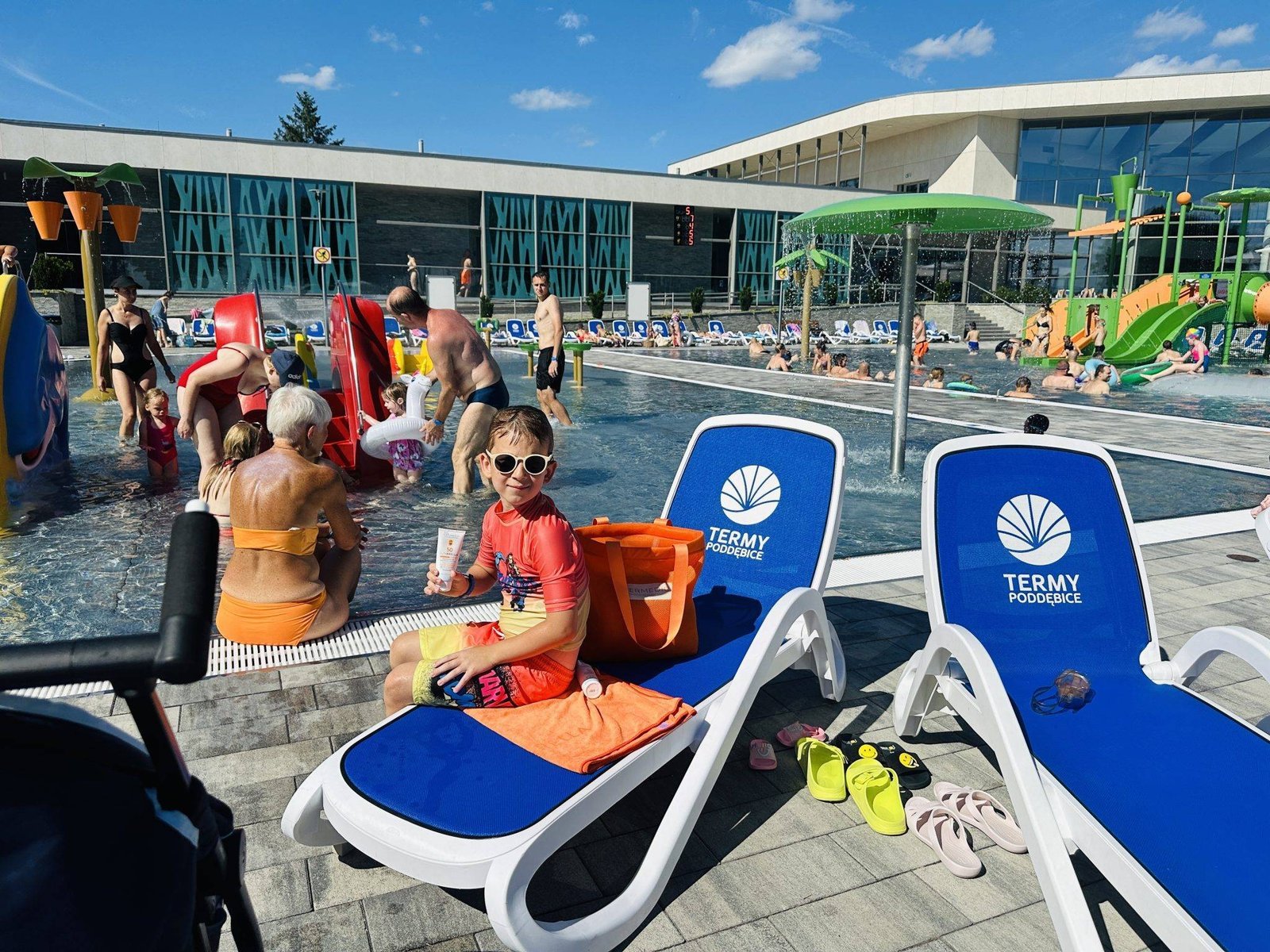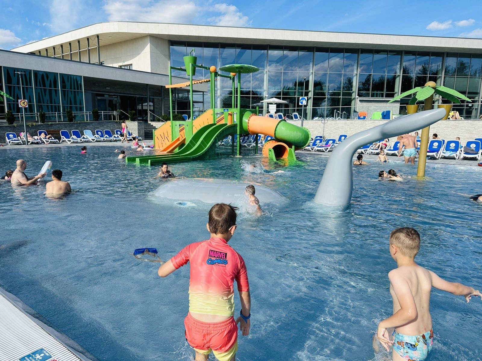We visited the Termy Poddębice complex in the summer, and we really liked the fact that there are plenty of outdoor pools and outdoor water activities for children. It is especially adapted to the little ones. There are small slides and water toys for them.