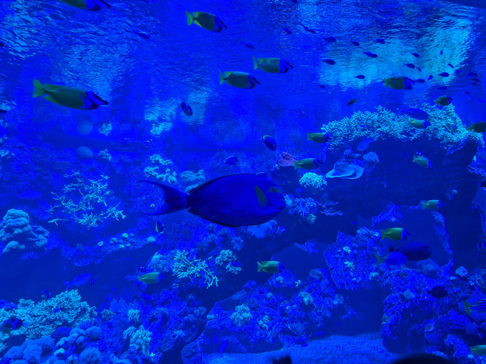 • An underwater tunnel with sharks, moray eels, and tropical fish.