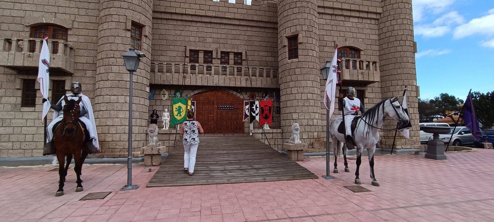 When we arrived at the castle, we were already greeted by two knights on horseback at the castle entrance. The children were very impressed and realized that the show was definitely going to be a live performance with horses.