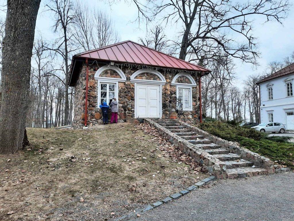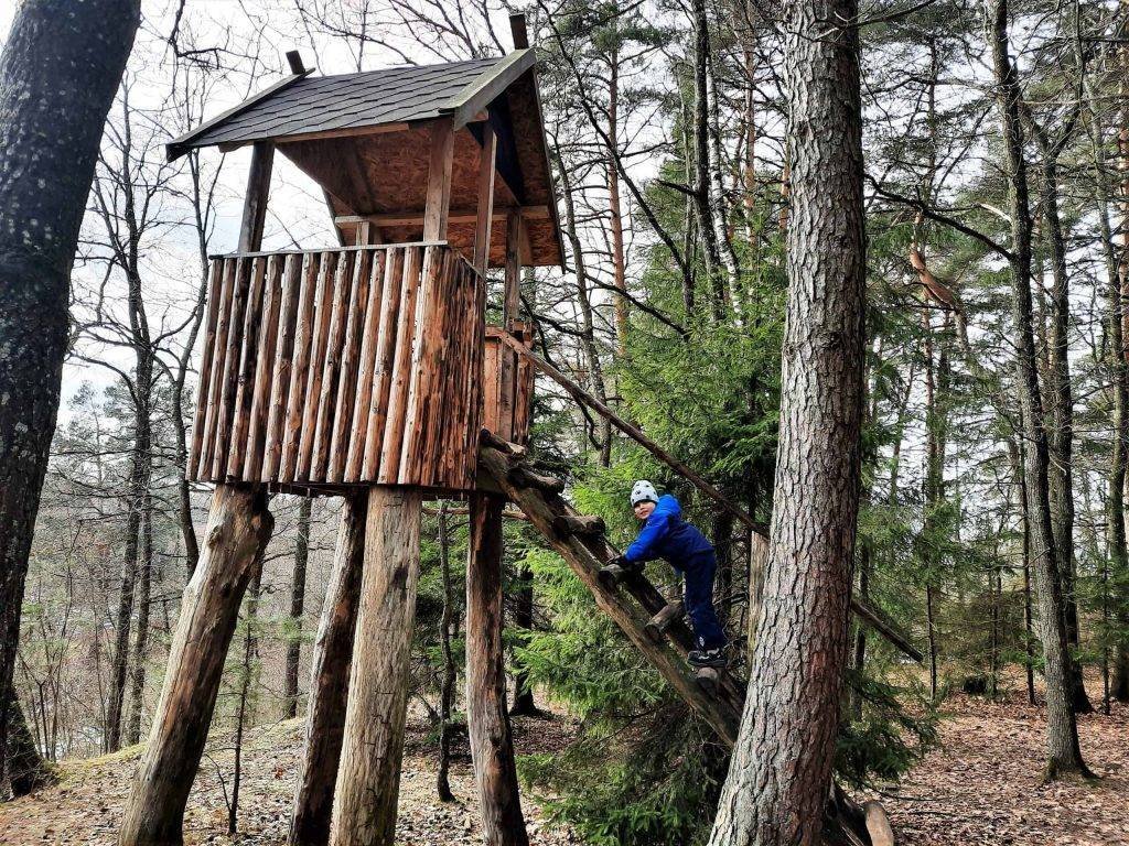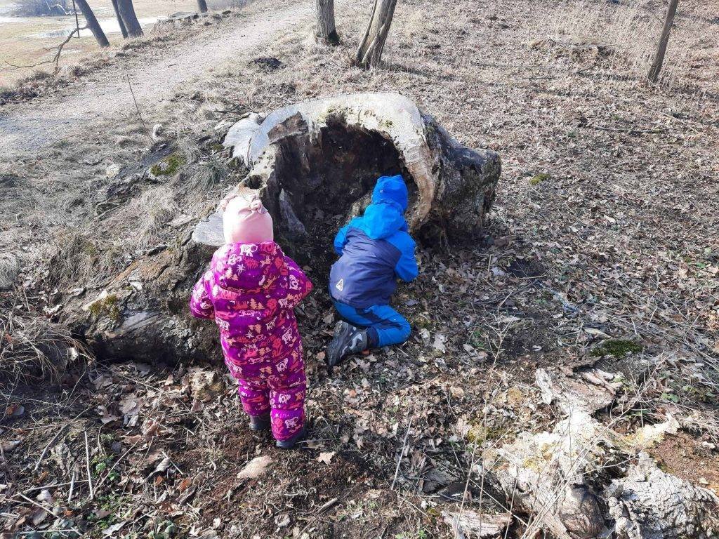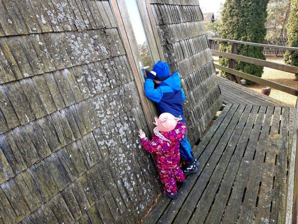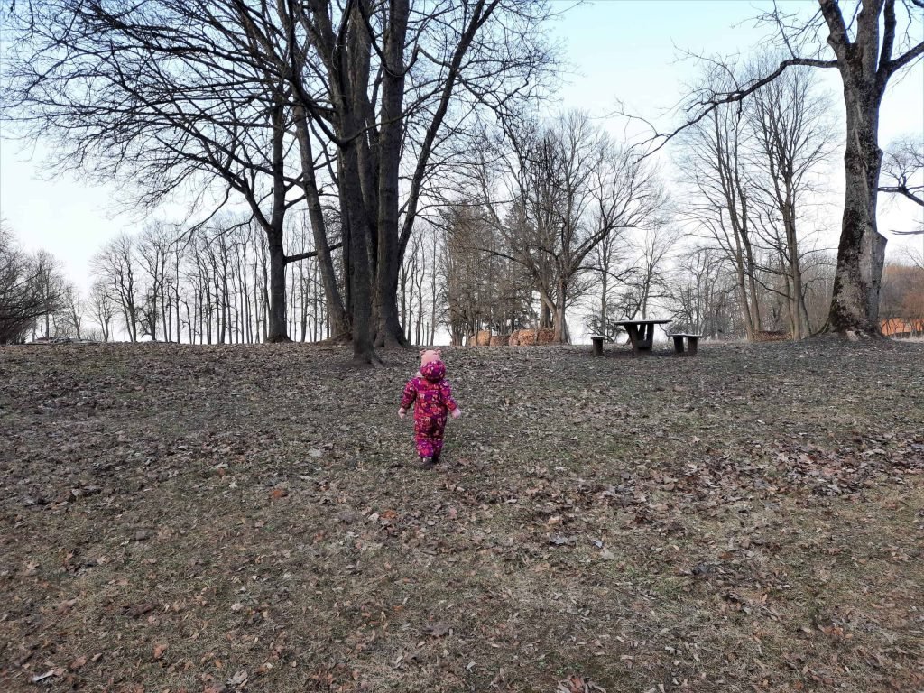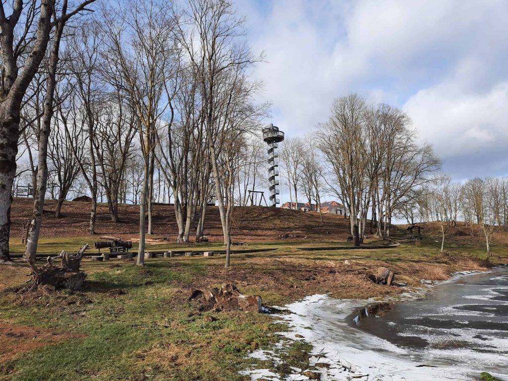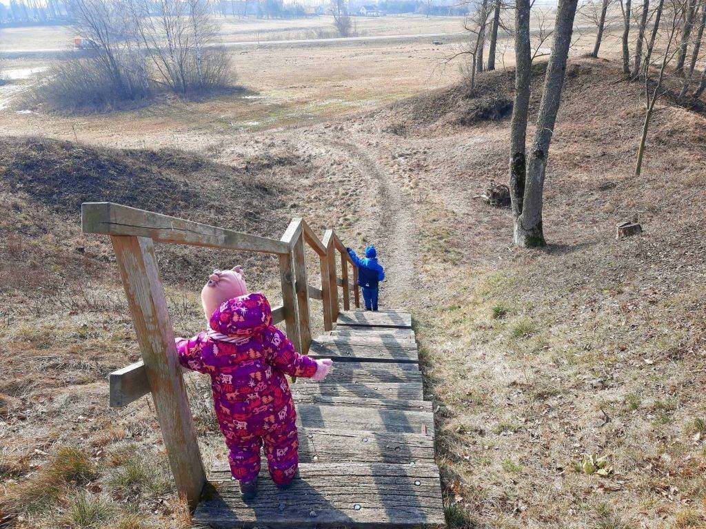 There is a lookout tower nearby, which overlooks the picturesque valley and cliff of the Linkava stream. Spring, while the trees are still leafless, is the best time for that, when you can see the bends and cliffs of the stream. Children especially liked the tower, which became a real fairy house.