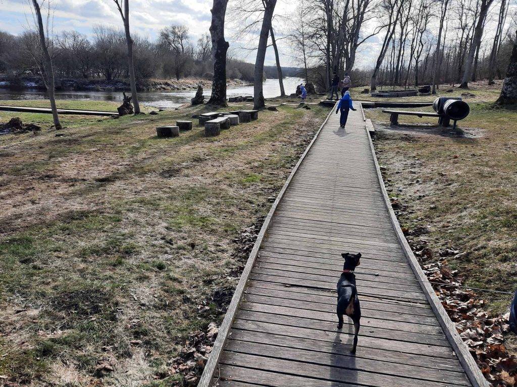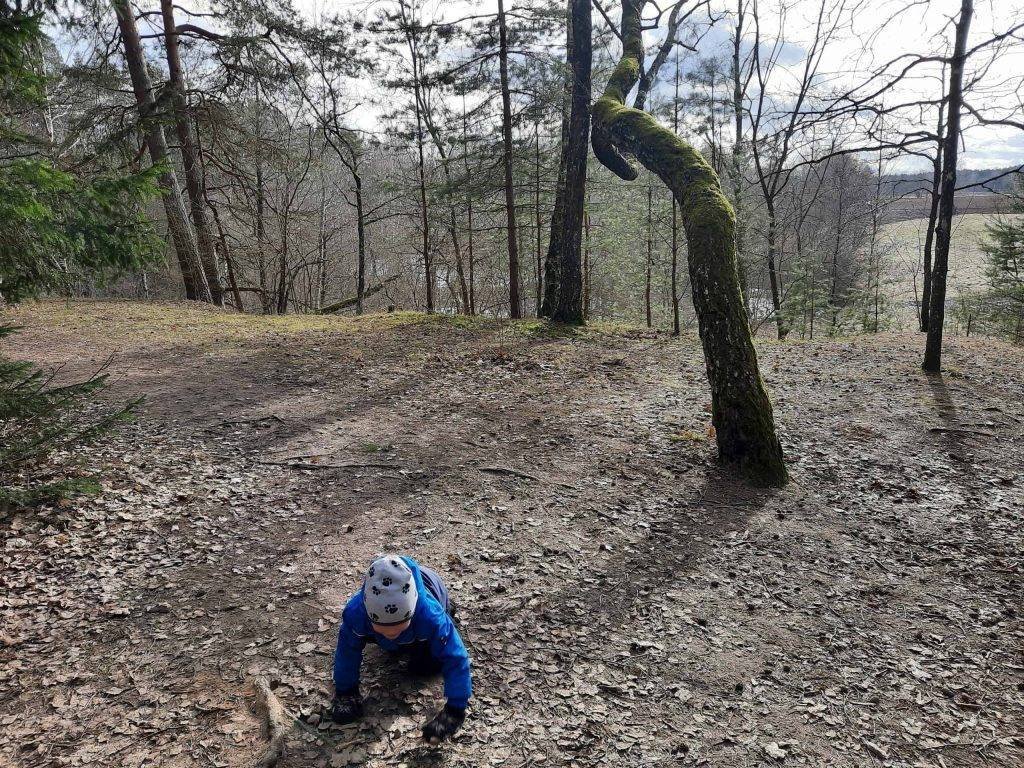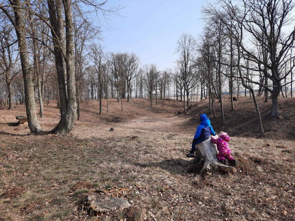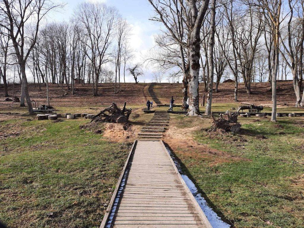 After crossing the bridge, climbing the stairs, you find yourself in a large area with a ravine in the middle. In this place, it is believed that the manor of Mr. It’s a great place for children, let them look for the old manor, maybe at least some old key or thing from the former manor can be found? Go search like real archaeologists. And what a great joy to find an old tree stump and a treasure hidden there! Get ready for small surprises, which, if hidden, will be a real joy to find. It’s nice to walk on top of the mound, good paths, benches, renovated stairs.