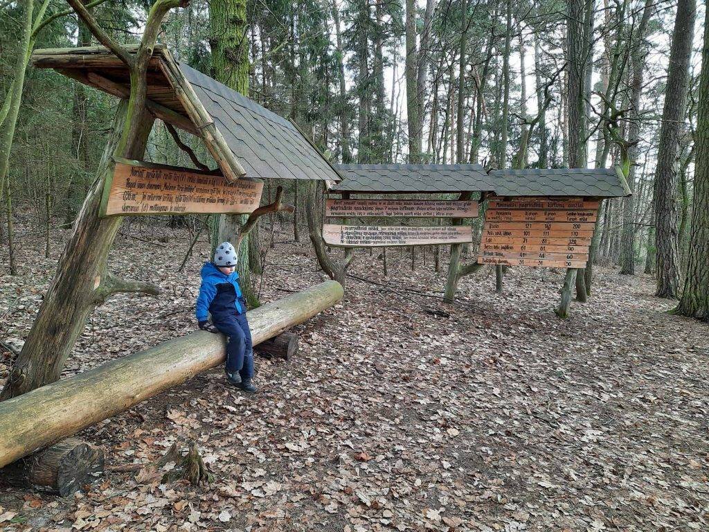 An equipped parking lot with information boards informs you that you have arrived. The beginning of the educational trail is indicated by a wooden gate, next to which information is provided about the purpose of the trail to acquaint visitors with the forest, its structure and the works carried out in the natural environment, to train people to behave culturally in nature. The trail winds through a beautiful forest. Spring and awakening nature is a great time to visit such an educational trail and observe what is happening in nature. Do not be afraid to stray from the path into the forest, look for ants that have woken up with their children, blue fireflies. Improvise, let the children find a fallen fir tree and create a real hiding place by hiding under its branches.
