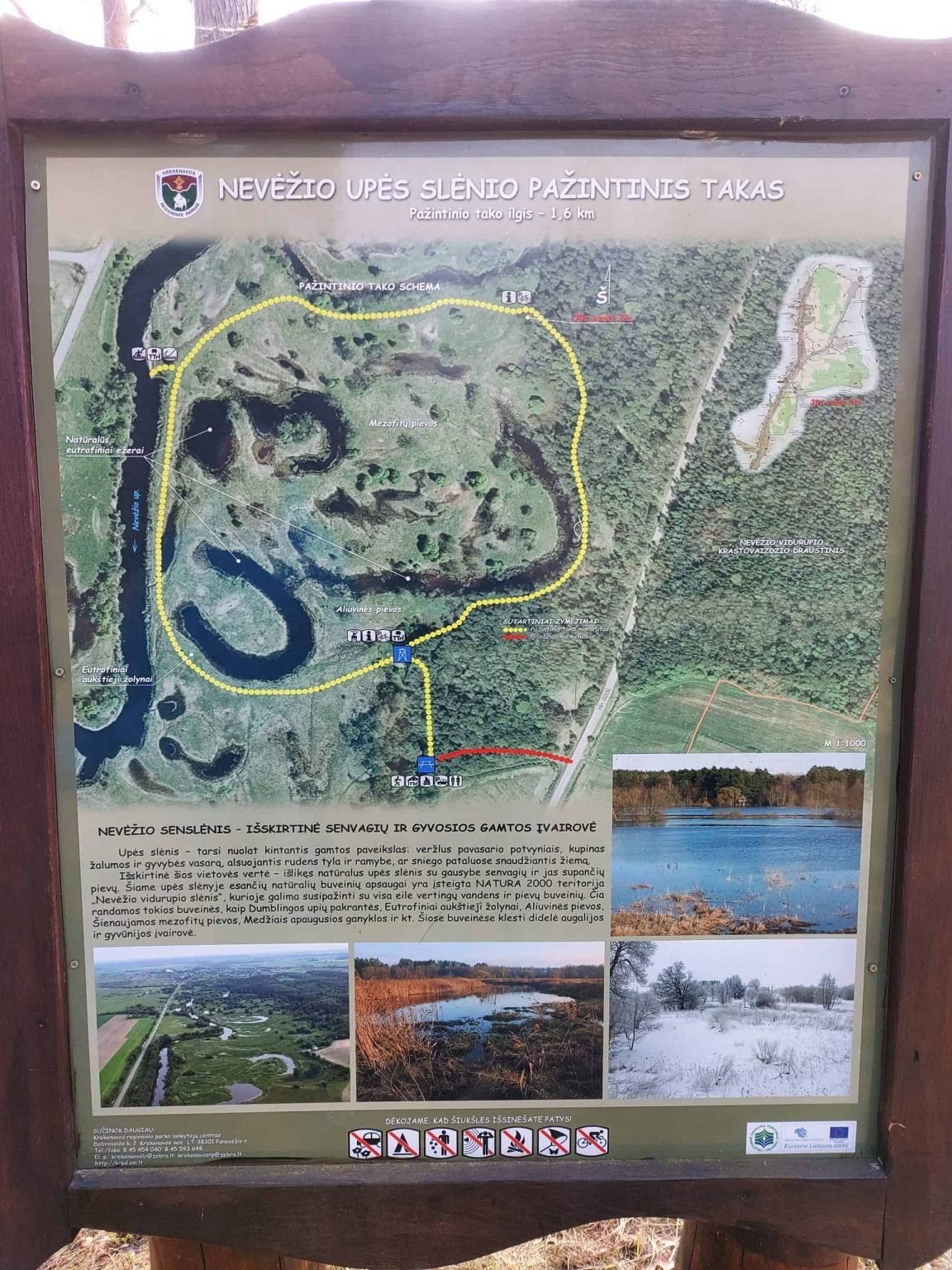 And this, like the other towers, was very liked by the children. From the tower, you can look around the Nevėžys old canals – former parts of the river bed, which are now separated from the new bed. If you’re lucky, you can observe various types of birds from the tower, many of which live in old barns. Bird species are written on a nearby stand. It is really worth taking a walk among the old thieves of Nevėžys, the children really liked the different landscape and the discovery of new experiences. This trail is one of the most impressive trails in Lithuania, which is definitely worth a walk.