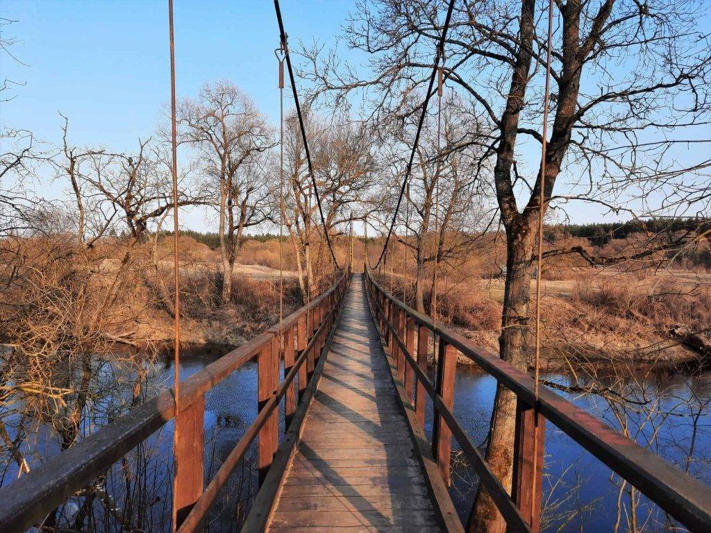 A great stop on your way to the Museum of Bookkeeping. The bridge is on the left, visible from the road Naujamiestis – Krekenava. A wooden bridge hanging on ropes, which is simply fun to walk on, to admire the wonderful landscape. If children have not seen such a bridge, then it is necessary to stop and walk on it. 37 m long, hanging on ropes, it is also called the “monkey bridge”. Lieptas connects not only the different banks of Nevėžis, but also two boroughs: Krekenava and Naujamiestis.