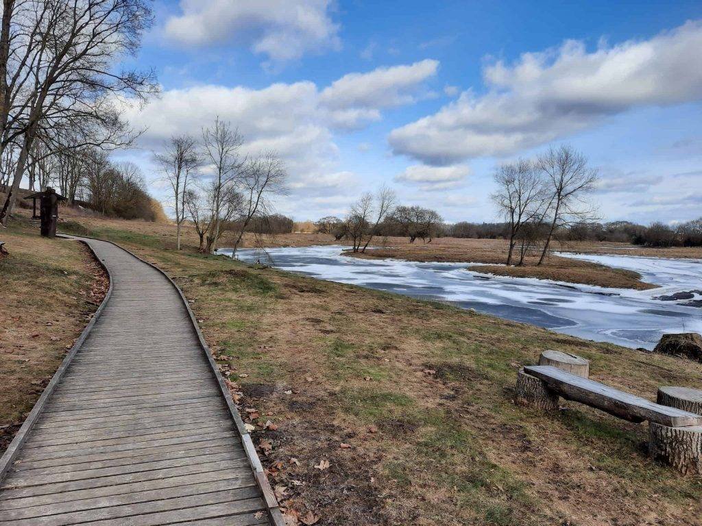 This trail can be traveled in all seasons and observe the change of nature during different seasons. In the spring – flooded meadows and flocks of migrating birds, in the summer blooming meadows and marshes, and in the winter to watch the ice-bound river channels.