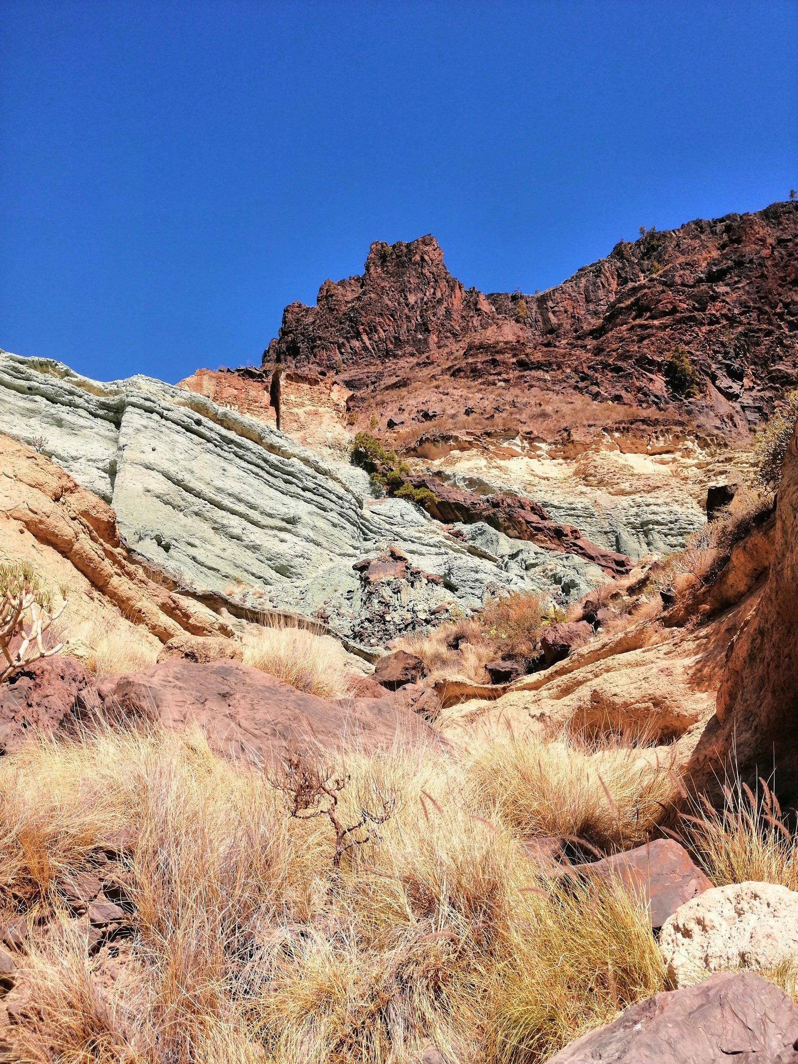 On the road that connects Puerto de Mogán and La Aldea de San Nicolás, there is a natural and tourist attraction, Fuente de Los Azulejos. These are mountains with colored bands of different rocks, among which green clay predominates.