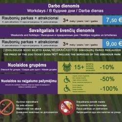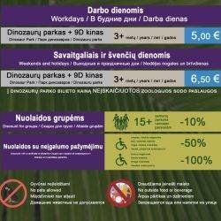 All day entertainment in Raubonys Park + attractions costs only 7.5 euros on weekdays, 9 euros on weekends. Dinosaur park + 9D cinema costs 5 euros on weekdays, 6.5 euros on weekends.